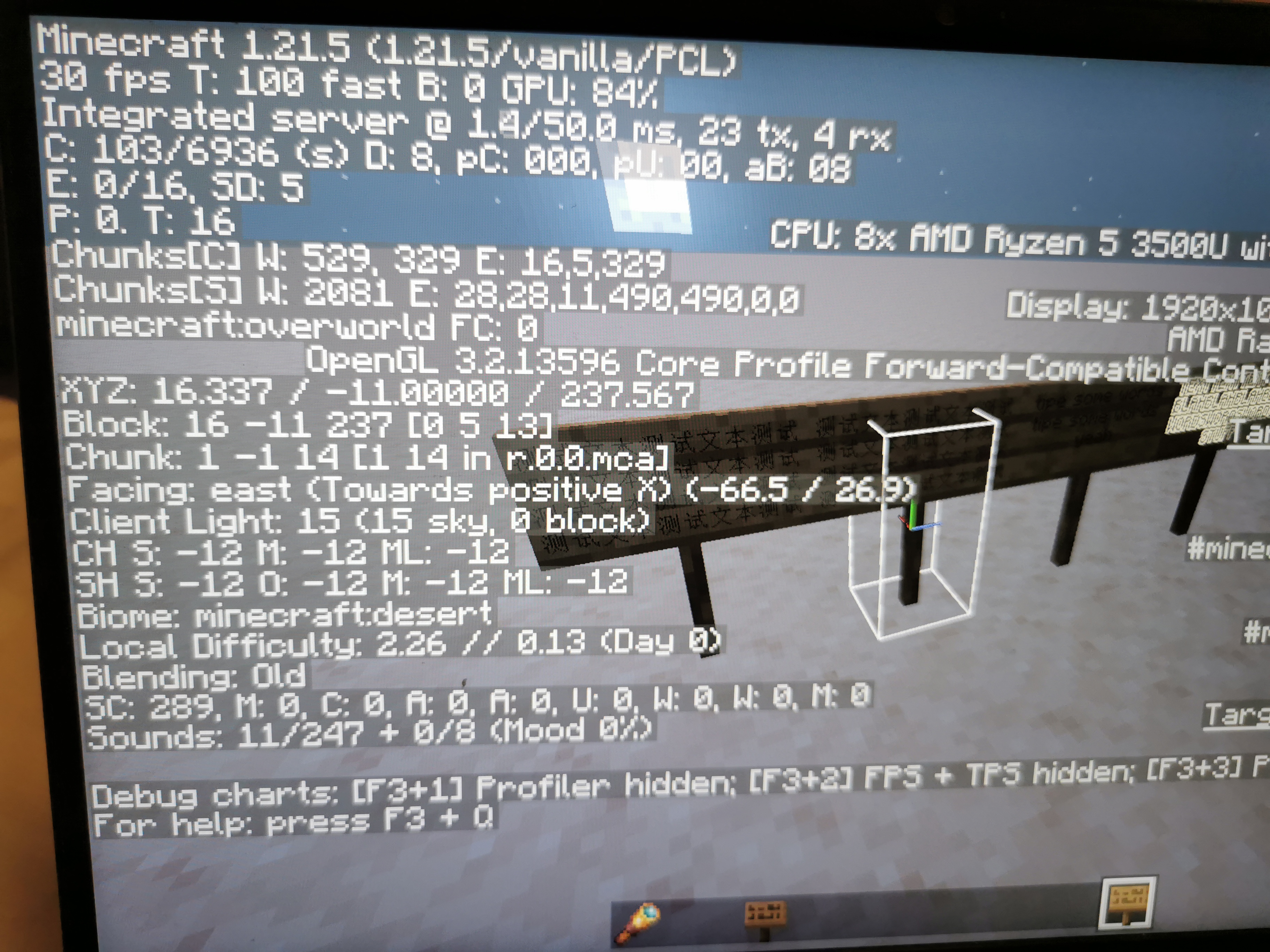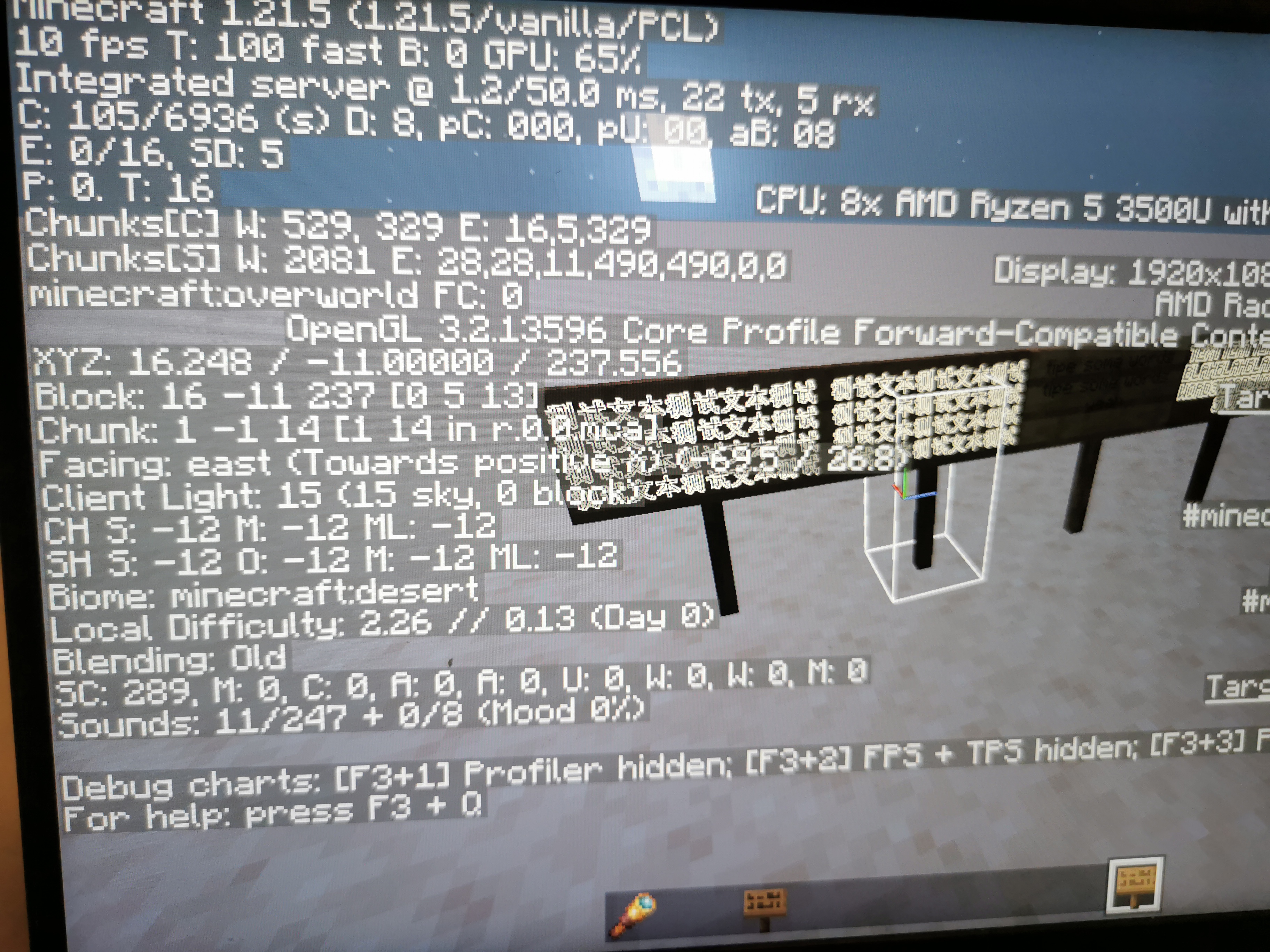 I normally get around 370 frames with a chunk distance of 29. After placing around 100 signs filled to the max with the most complex Chinese characters i could find. i was able to bring myself down to nearly 30fps regardless of chunk rendering distance. Looking up into the sky brings back some frames but even with my back towards all of them my fps was still a little over 30.