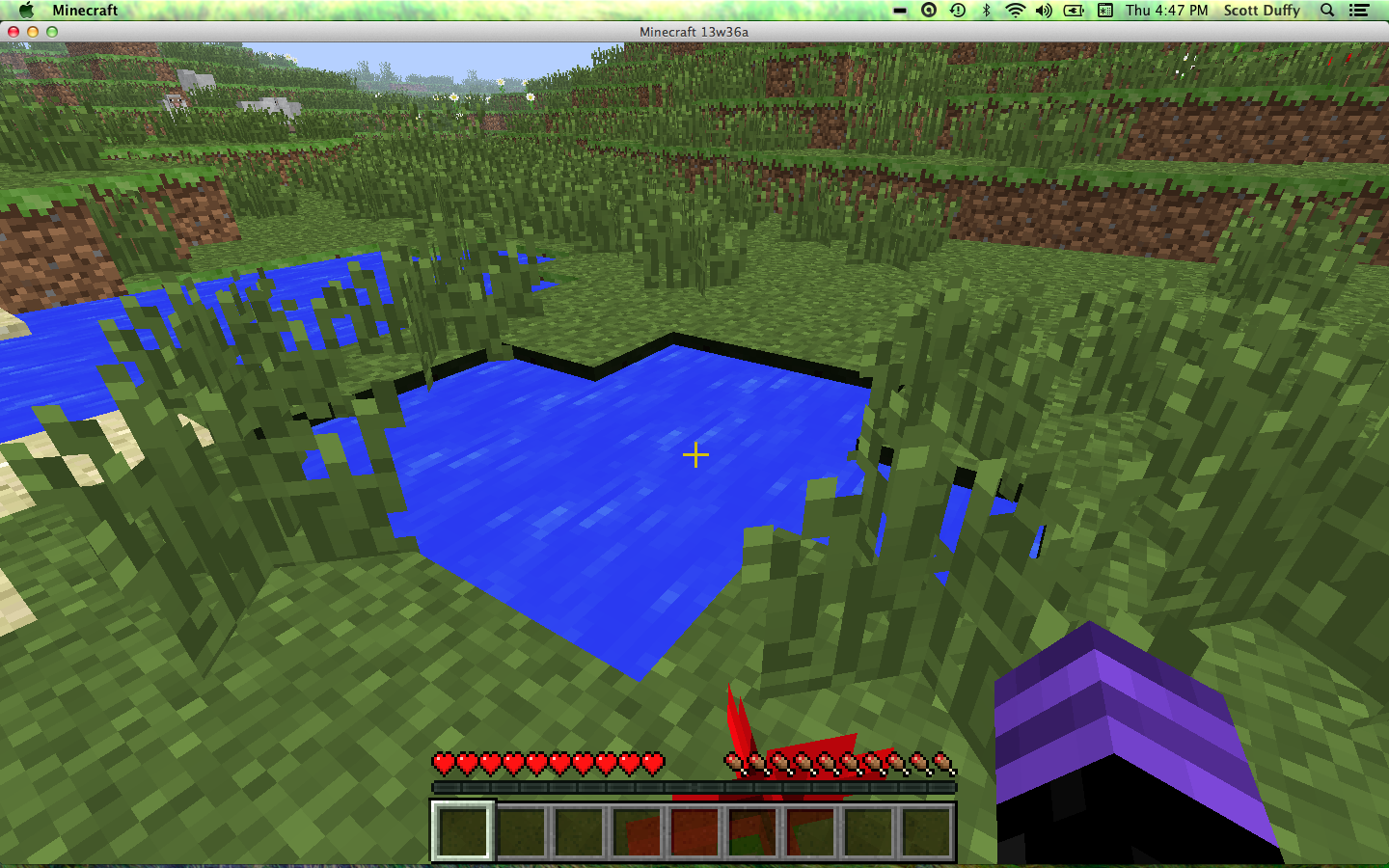 As requested by a Mod @Kumasasa I have uploaded the crash report as soon as I saw the bug again. I took the second screenshot at the moment before I forced a crash. It happened as soon as I started the world in this case, but I should note that the first time I experienced the glitch, I saw it on every pool of water, and I saw it multiple times throughout the course of my hour or so of gameplay.