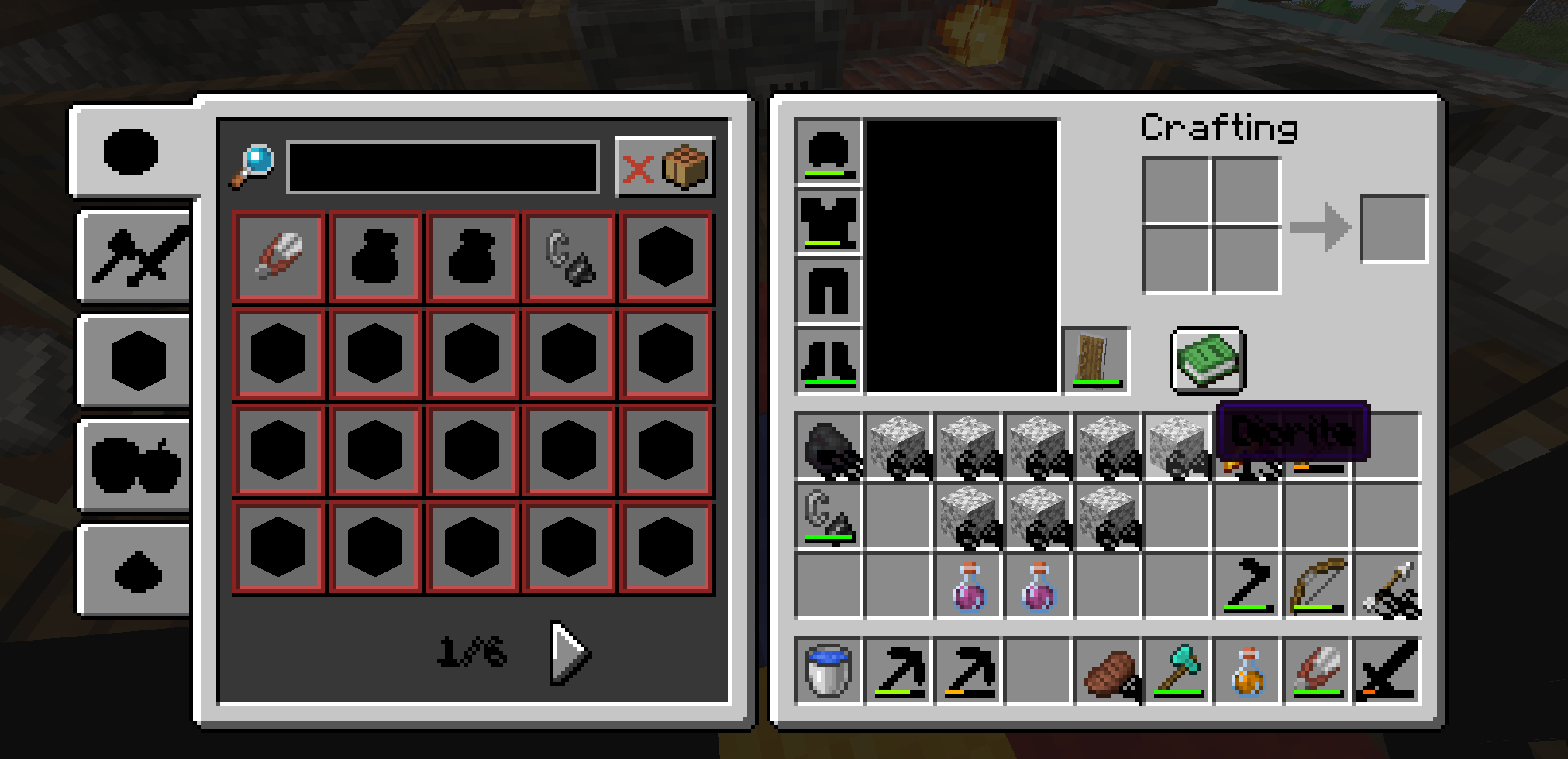 First attachment shows two diamonds pickaxes not enchanted even though they are and glowstone and porkchops as if they were enchanted even though they are not.