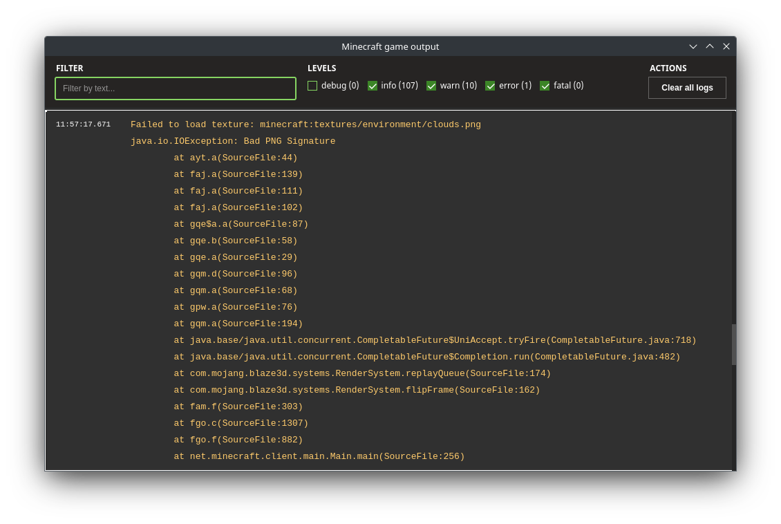 Expected results would be for the missing texture to still be used, or possibly a dedicated new missing texture for clouds as coloured clouds are no longer supported.