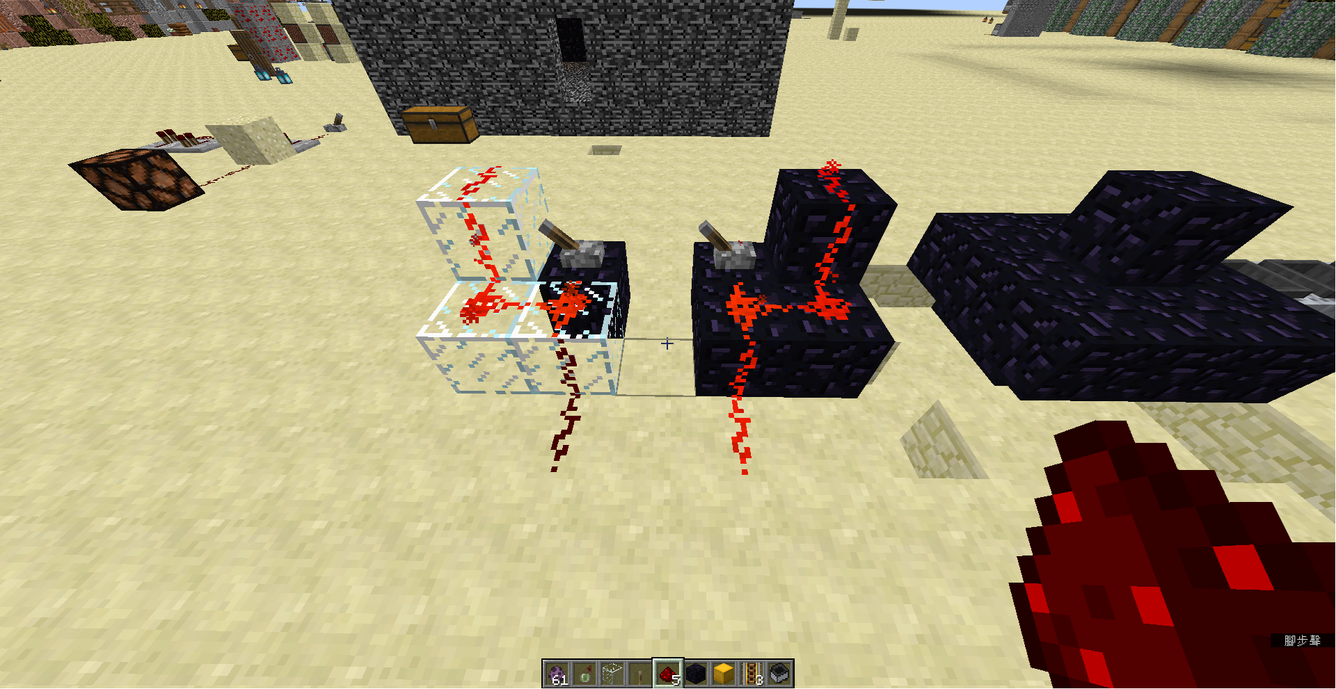 When you place redstone dust on glass, redstone signals can't be transmitted downward.