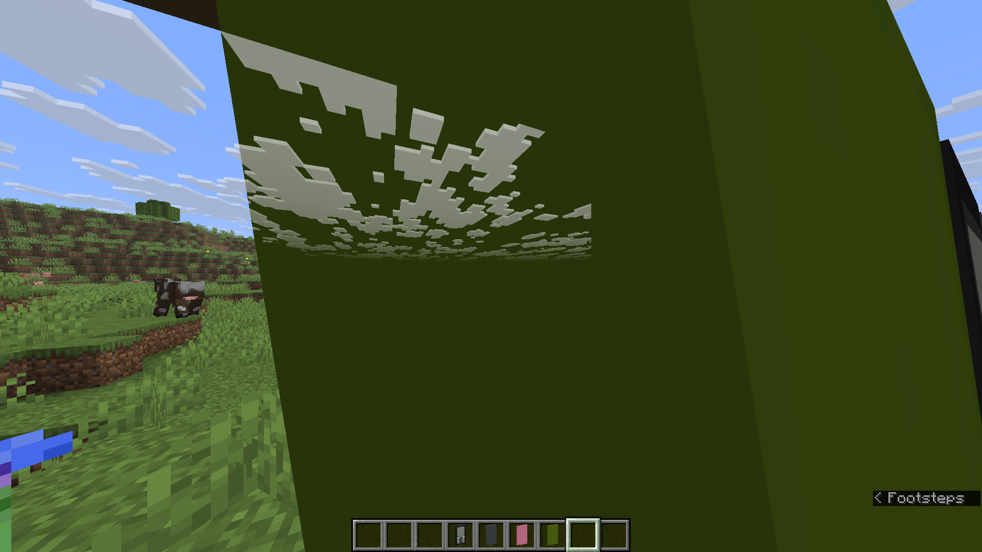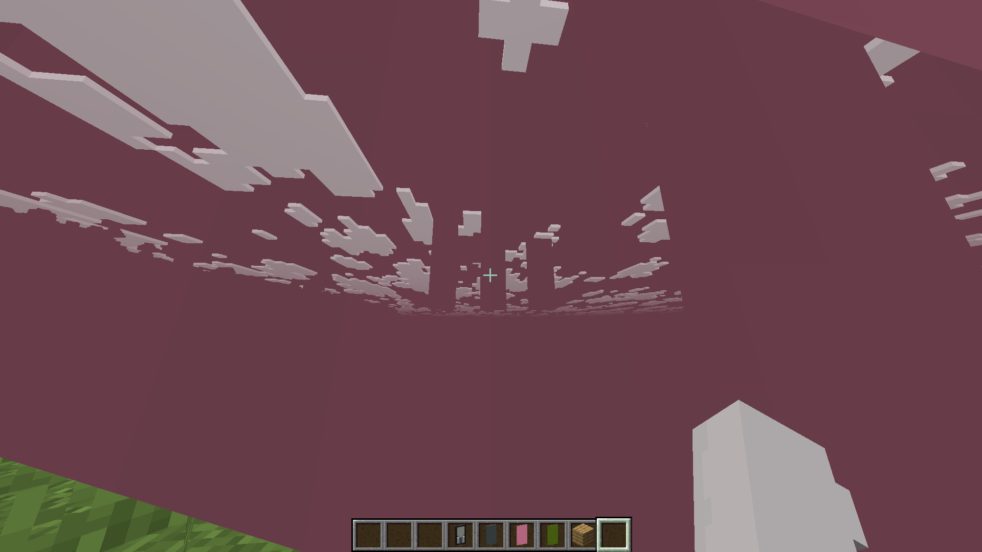 When your camera is clipped into a banner, the interior faces do not stop the rendering of clouds. This results in them being visible, even when the rest of the world's terrain and mobs are not. Note that the clouds are still occluded by blocks between you and them, which can result in the outline of placed blocks/the terrain appearing.