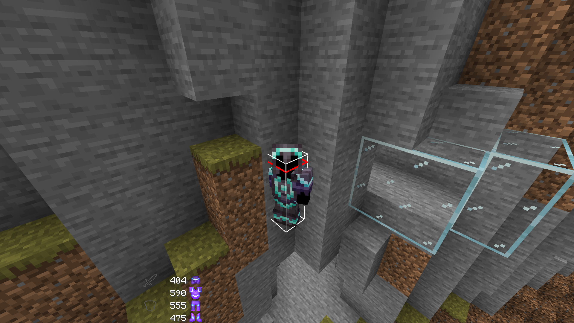 I threw an ender pearl against a corner, and then it teleported me to it, but somehow my hitbox got stuck inside it.