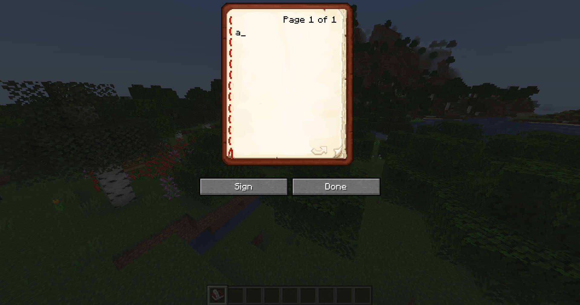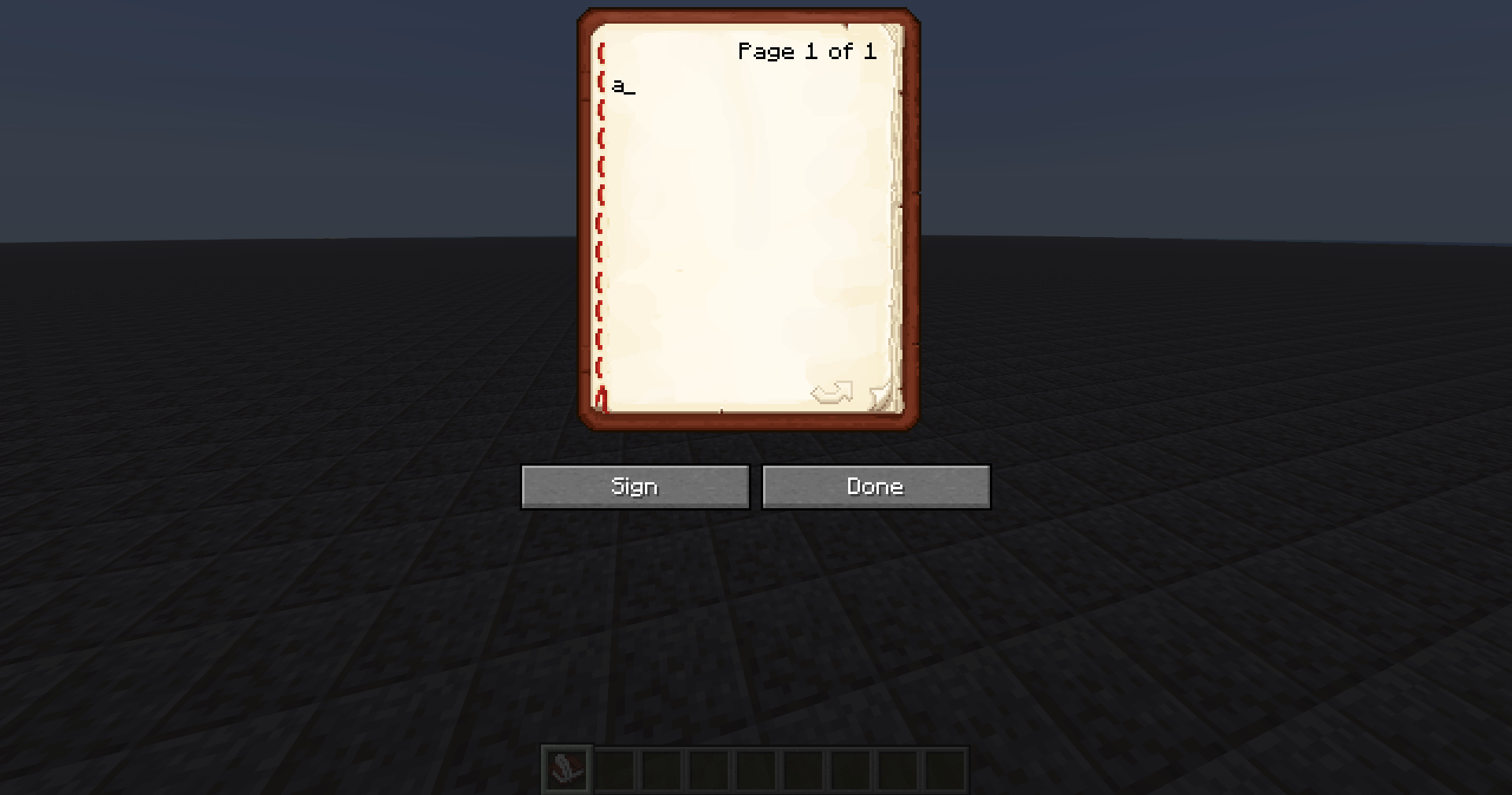 The cursor in the book and quill interface is positioned too far to the left.