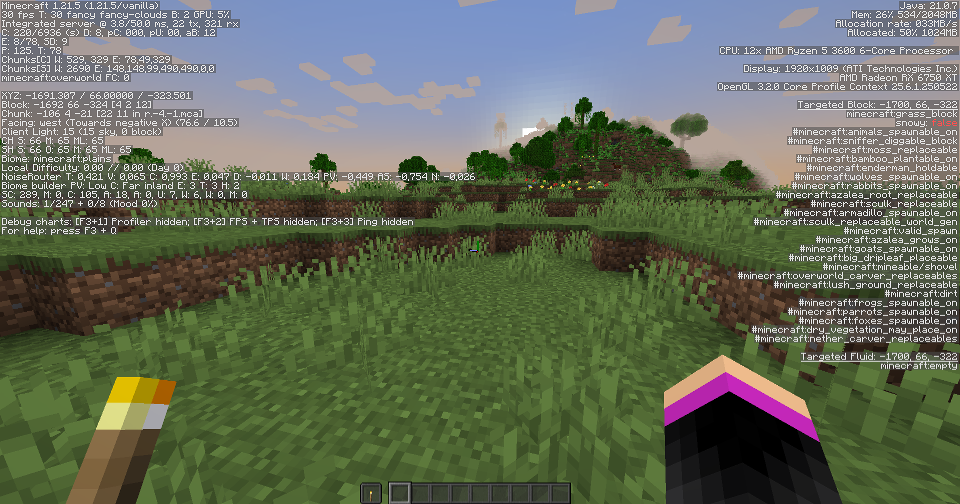 .minecraft/logsdirectory and attach thelatest.logfile to this report.Also, please provide us with your system specifications. To do so, please launch a version of the game unaffected by this issue, take a screenshot of your debug screen (enabled by pressing the F3 key) and attach it to this report.