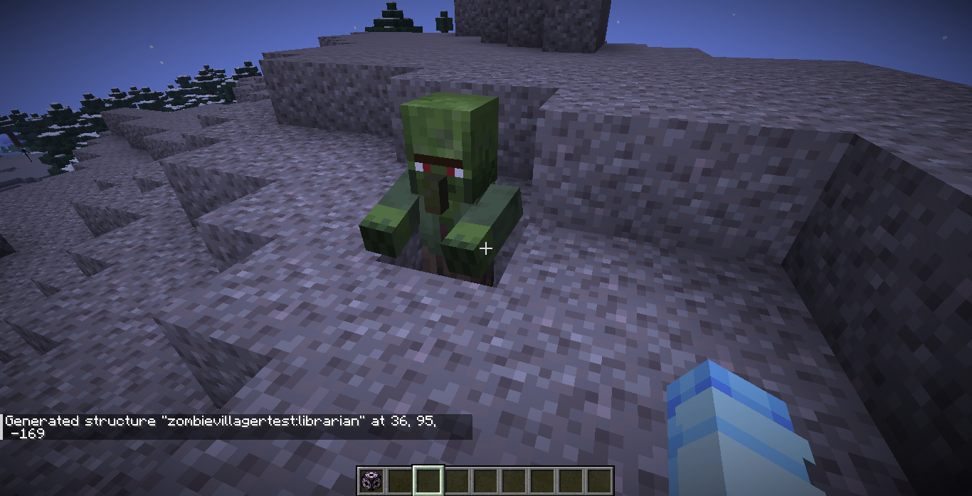 Generate into a world with the datapack and note the many zombie villagers across the surface. Note their professions and biome variant.