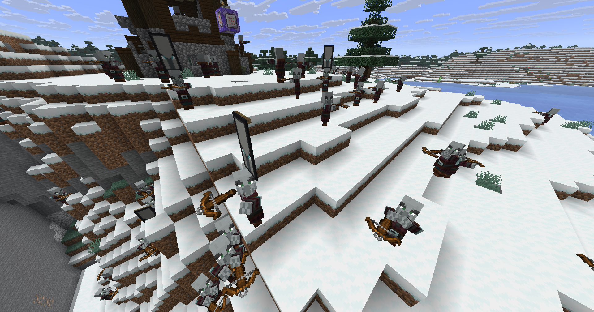 The position of the crossbow, and the direction of the pillagers arms seem to desync from each other and the pillager’s head. This seems to affect all pillagers simultaneously, and then snap back to normal every couple seconds. This could be to do with the new entity rendering system but I don’t really know.