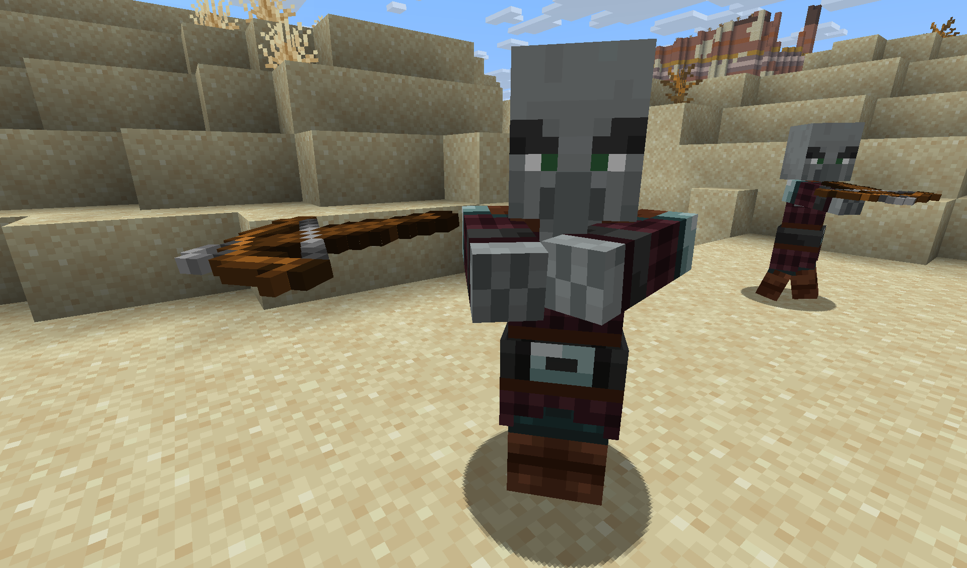 Looking at the pillagers from different angles, you can see that the crossbow is everywhere, but not in their hands.