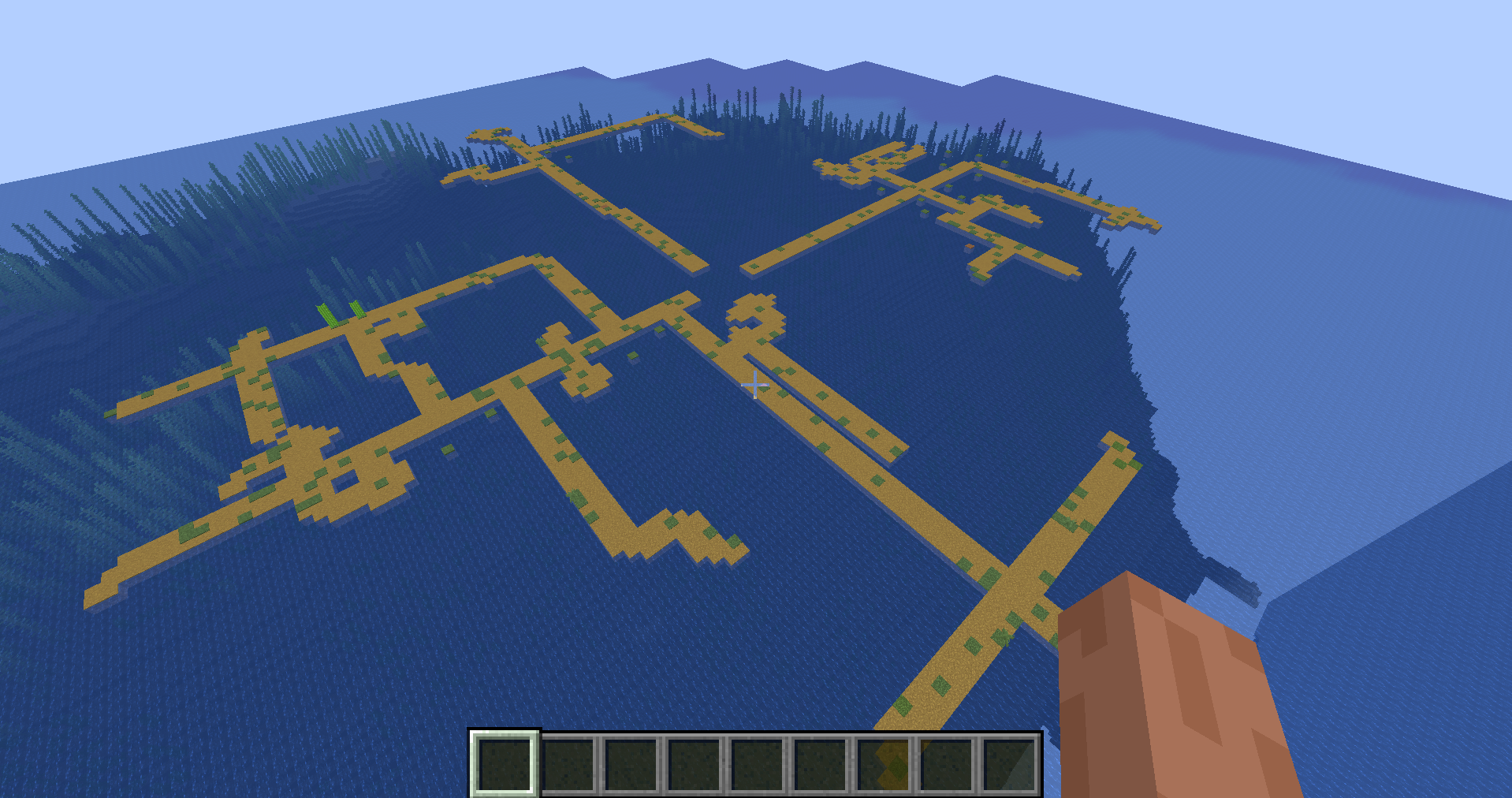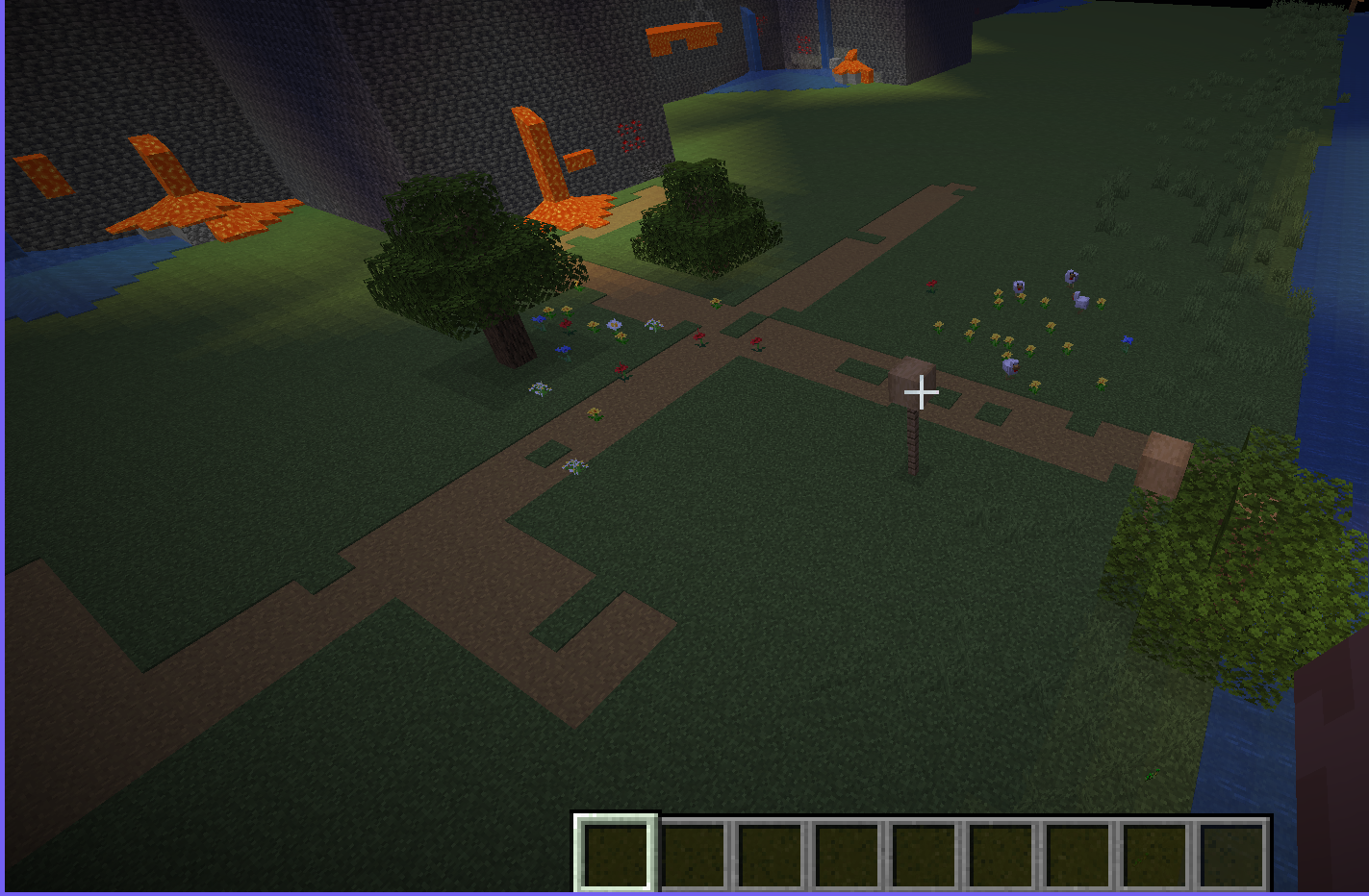 And even in the part that was on the ground on chunks from the flat world there were no houses either, although there were pillars and paths.