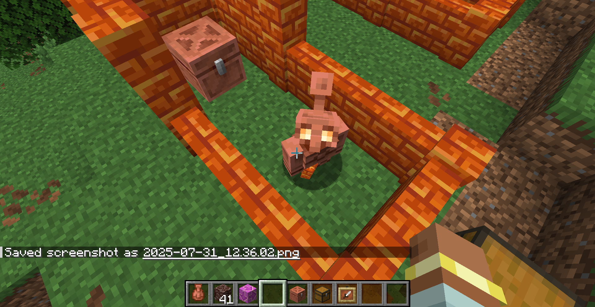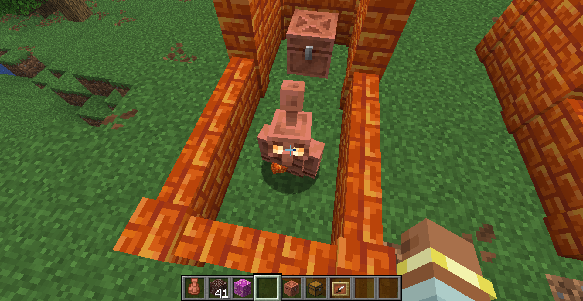 Bug when Copper Golem holds not full block for example: any slab or any wall...