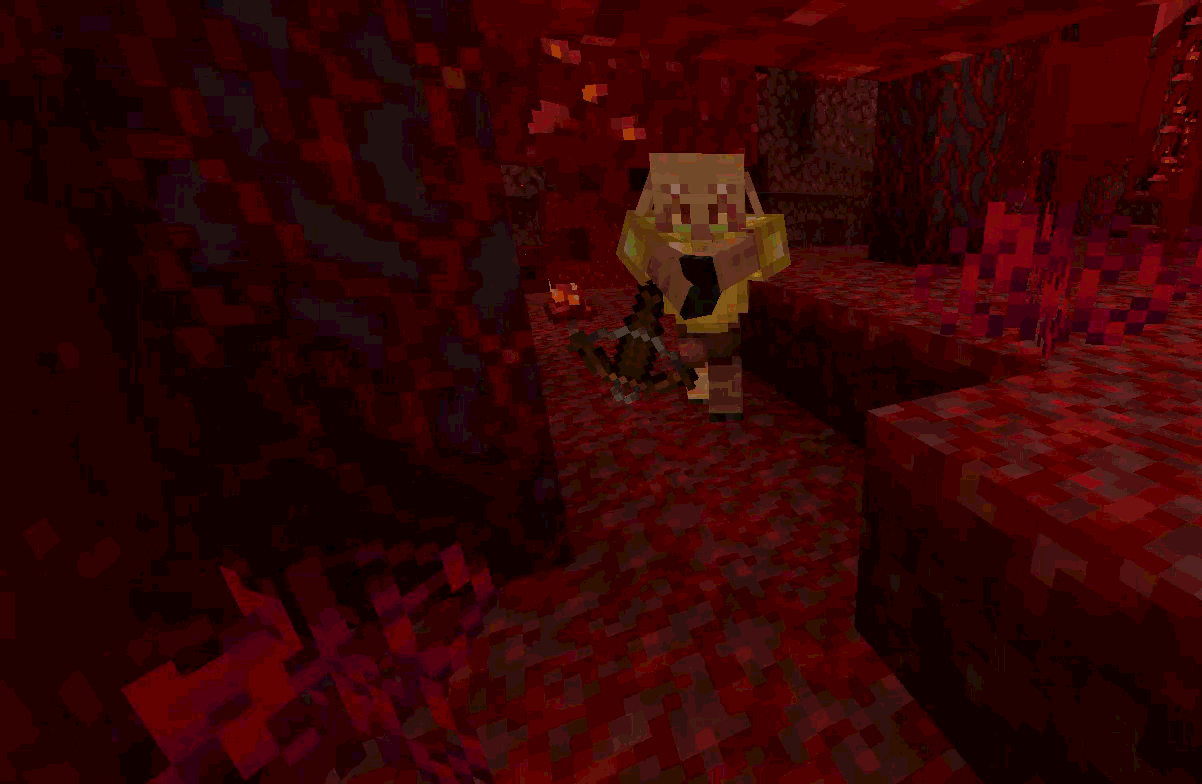 When I was in a crimson forest, i encountered some piglins, but in spite of their hands being raised to attack me, their swords and crossbows remained by their sides.