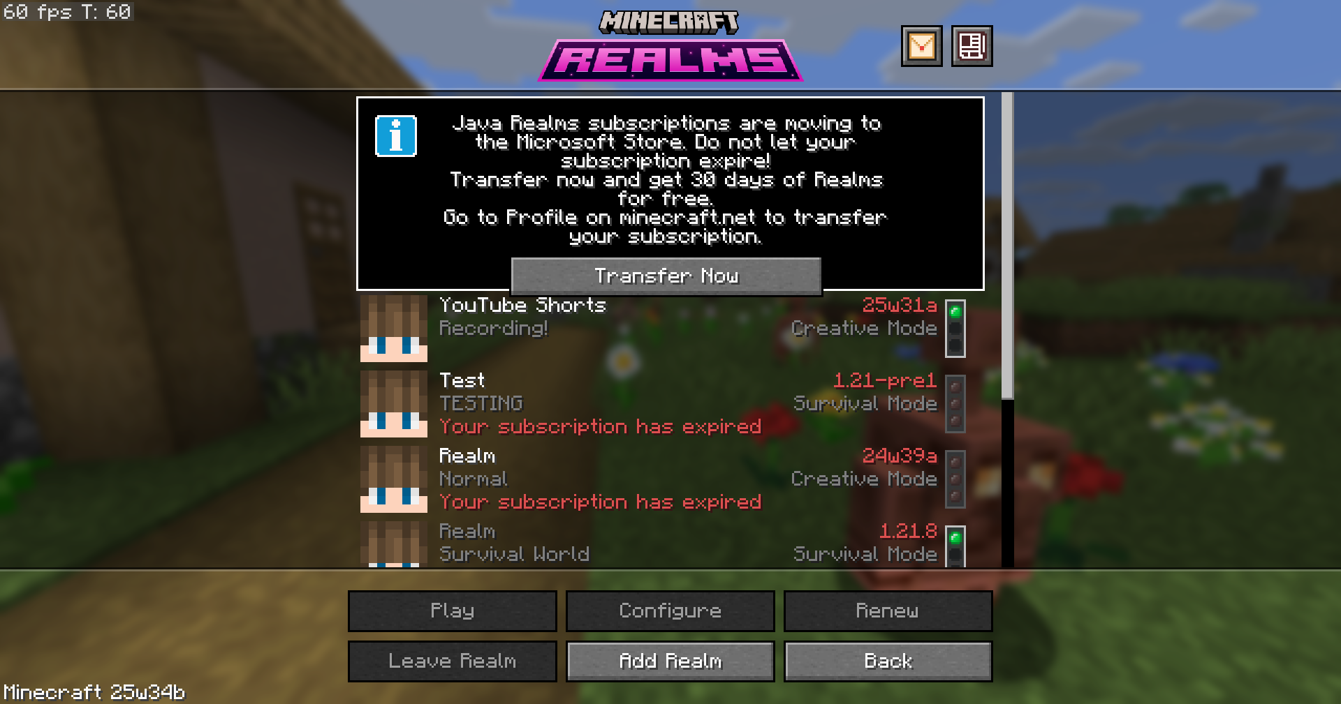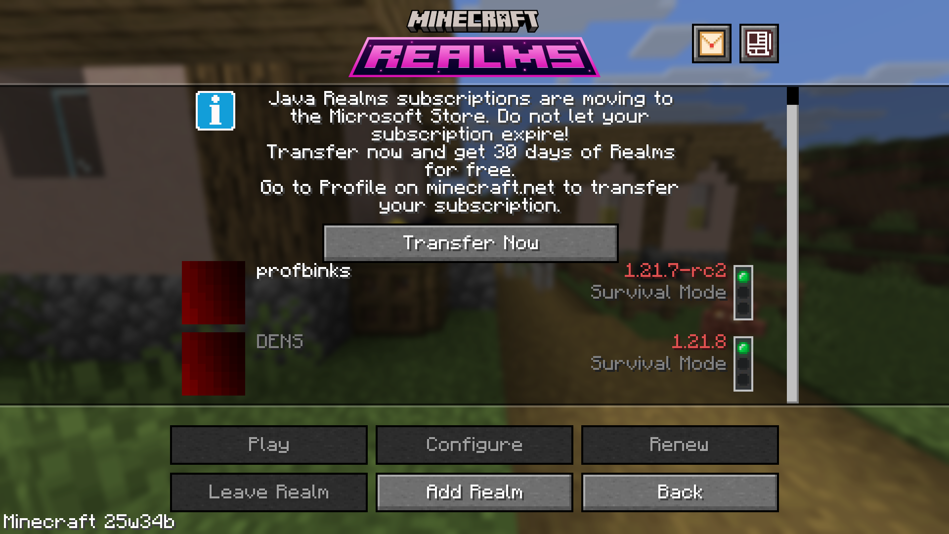 Click on the java realms information box and look at the “Transfer Now” button.