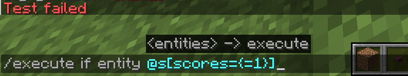 execute if entity @s[scores={=1}]execute if entity @s[scores={=1}]Was messing around with brigadier trying to recreate Minecraft’s command parsing for an external program I’m working on and bumped across this edge case. As far as I can tell, this happens because the method (presumably) used to parse the objective name, StringReader.ReadUnquotedString(), accepts empty strings. This method is used elsewhere (for parsing brigadier:string), but only here does it behave this way.