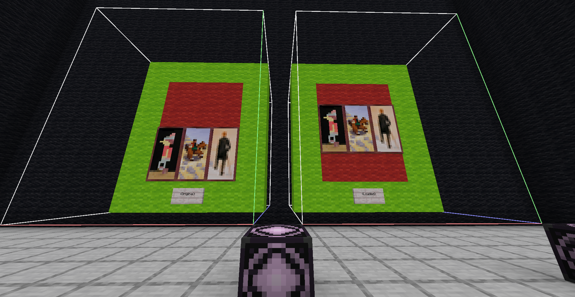 Then, load the saved structure, and again don’t forget to include entities in the structure block.