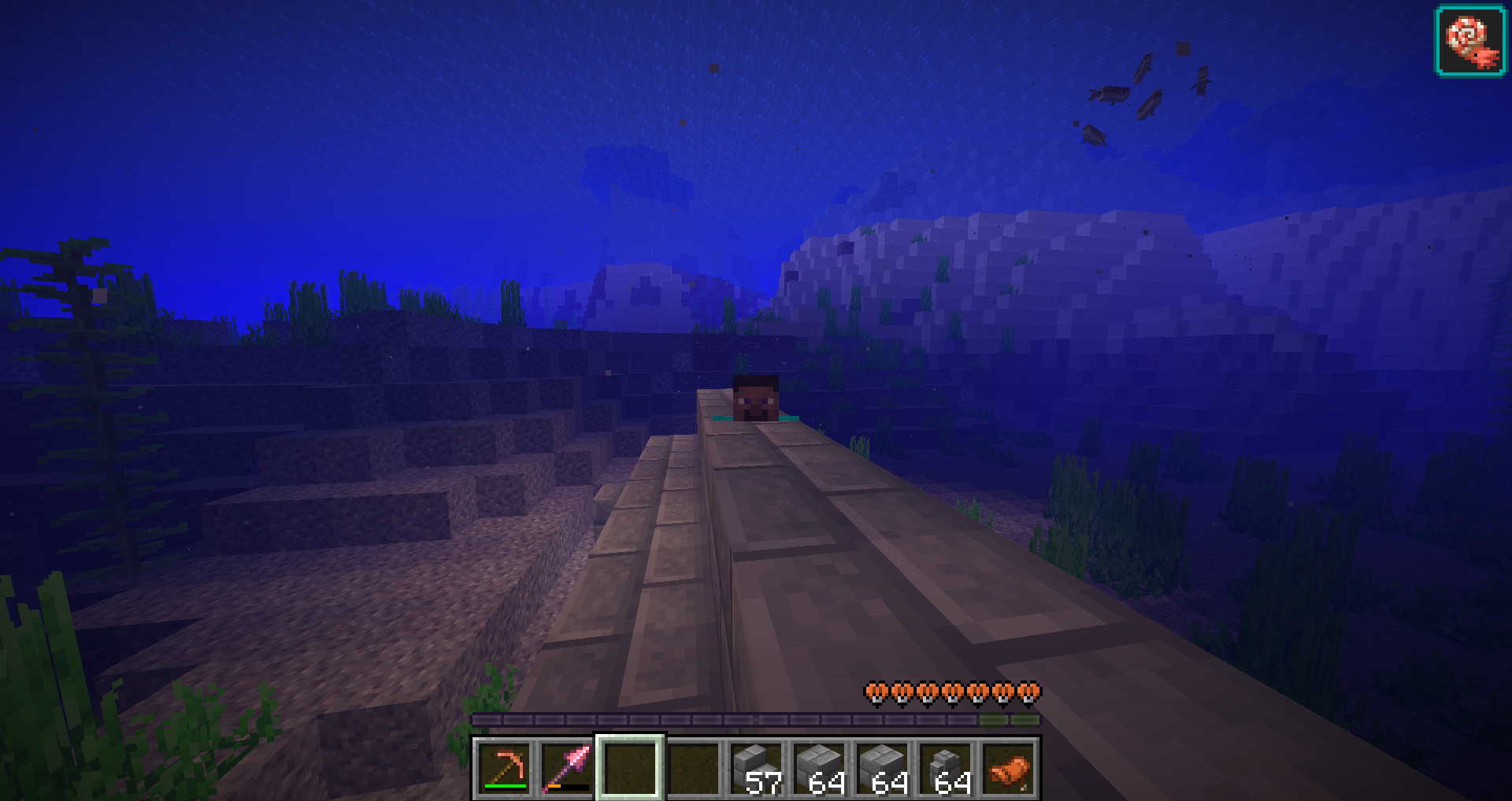 basically when you areridng the nautilus, the player hitbox has no collision, so the player pass throught full blocks until the nautilus hitbox collide with the block