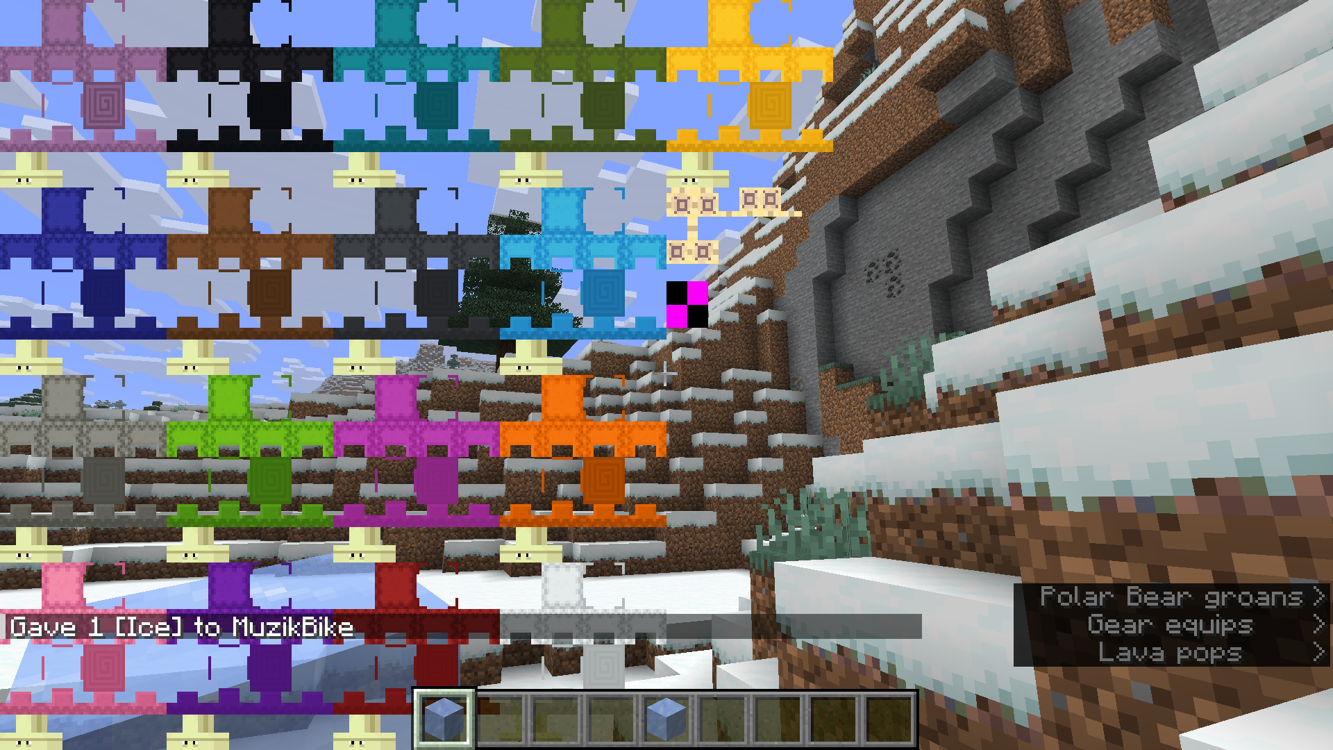 If an equippable item with a custom camera_overlay definition is placed in one of the player’s equipment slots, it is possible for raw atlas data to appear on-screen. This should not happen - atlases are only intended to be viewed in a debug context.