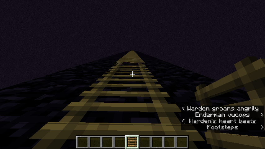 The recent snapshots' changes to ladders have introduced a strange visual effect: if climbing a tall ladder, the more distant ones appear “thicker”. Easily reproducible in normal conditions, since players often place a lot of ladders in such configurations.