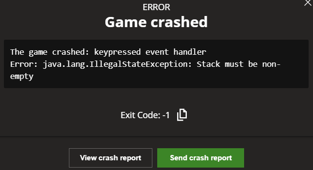 Error: java.lang.IllegalStateException: Stack must be non-empty