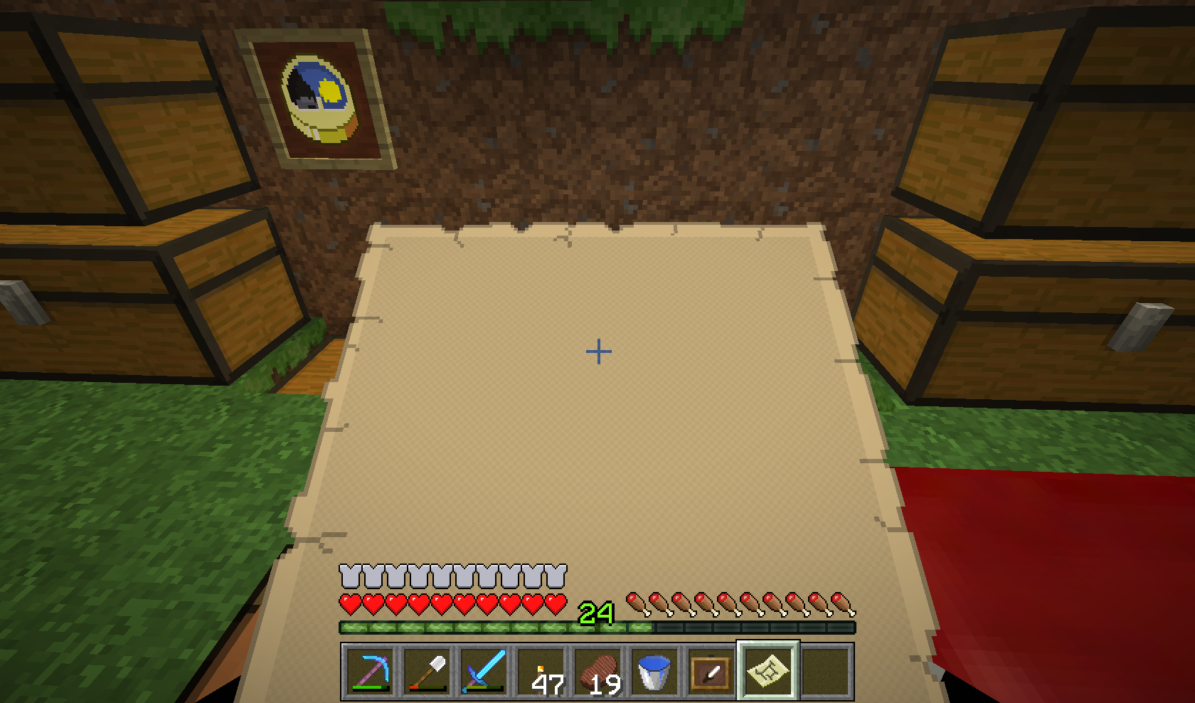 Map in hand is the entire stack of copies in the world of Map #3. However, you can see that it has not updated since removal of the item frames, and it does not show the player location. The player location would have been very close to the center of this map item.
