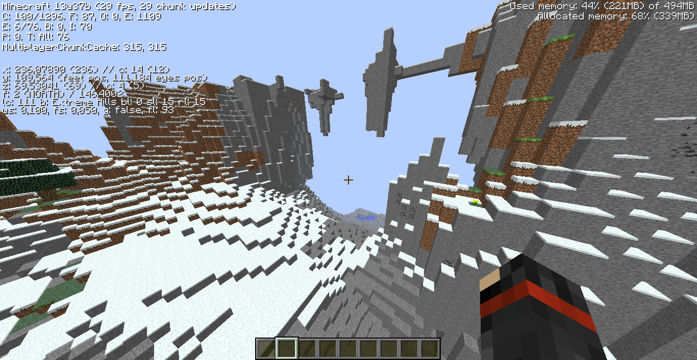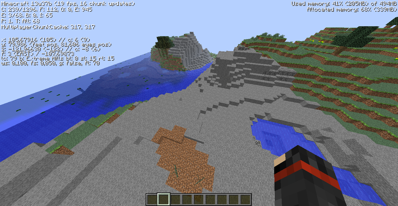 in snapshot 13w36a hill in extreme hills biome there is a mountain of gravel and then when I switch to the snapshot 13w37b and create a new world and I'm looking for a extreme hill and the mountain different from the snapshot 13w36a