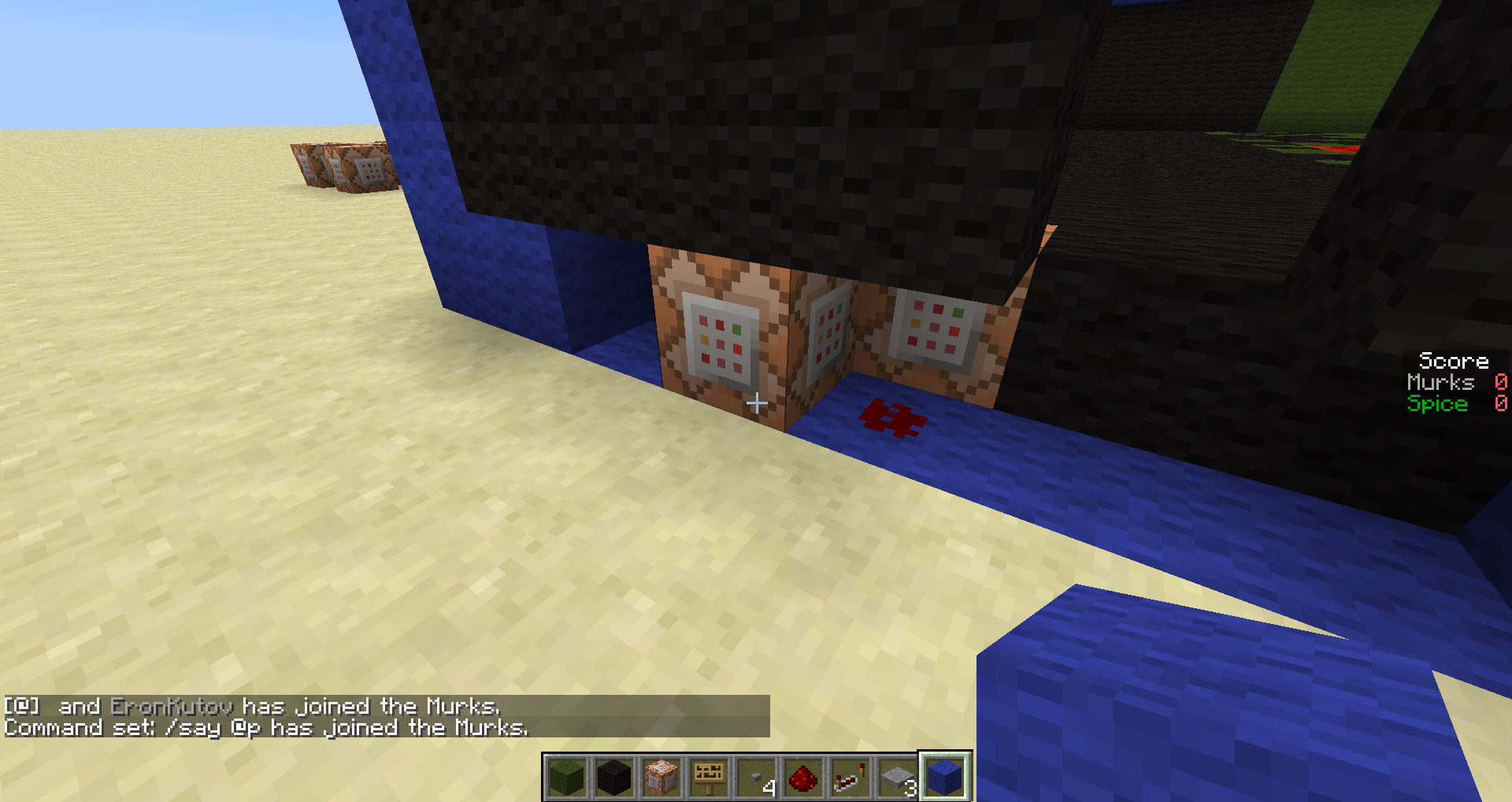 that the out put of the command block would be, "EronKutov has joined the Murks."