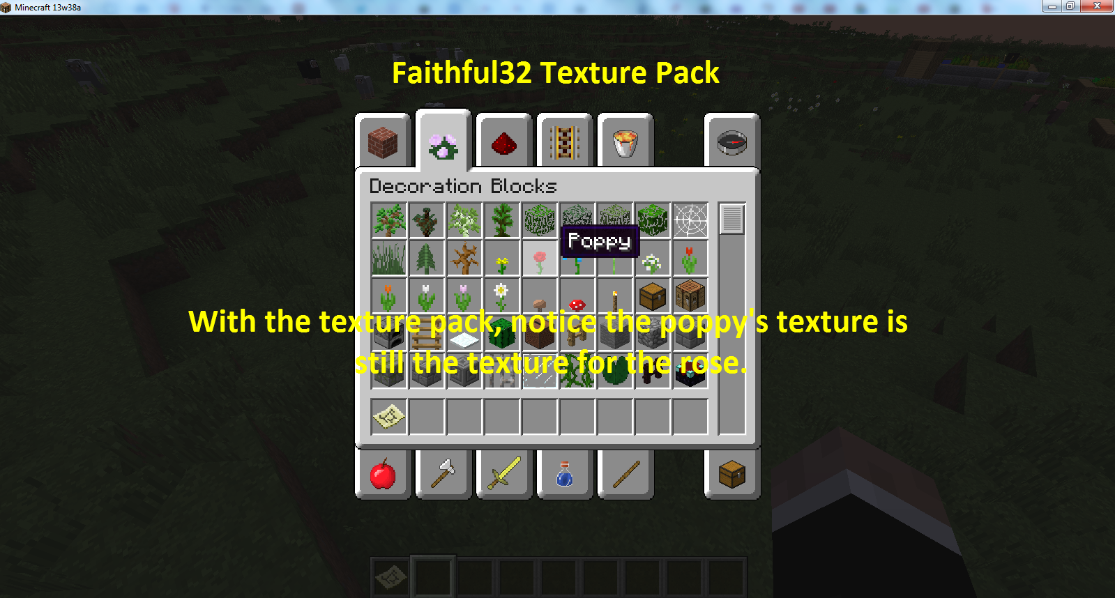 It's up to the texturepack's creator to update his pack with the poppy-instead-of-rose thing.