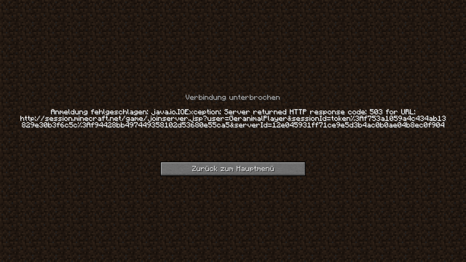 Failed to logion: java.io.IOException: Server returned HTTP response connection code: 503 for URL: