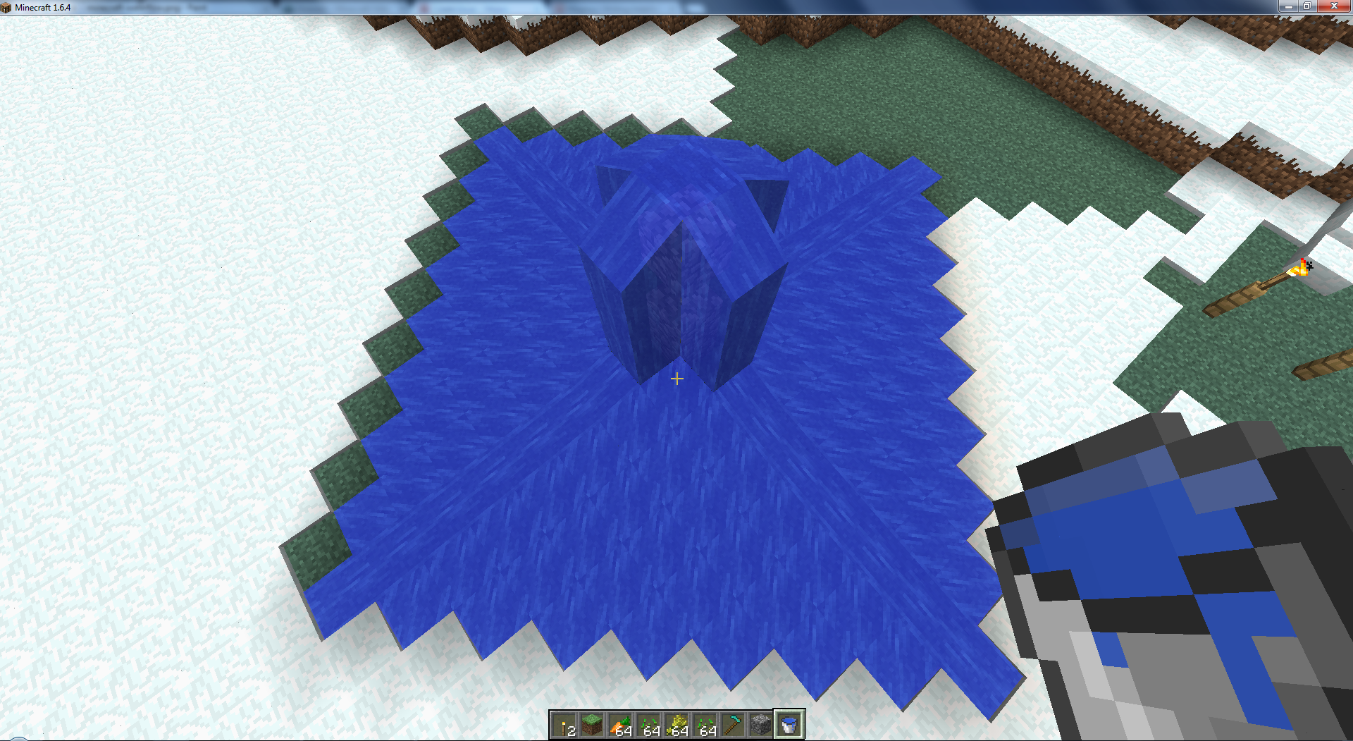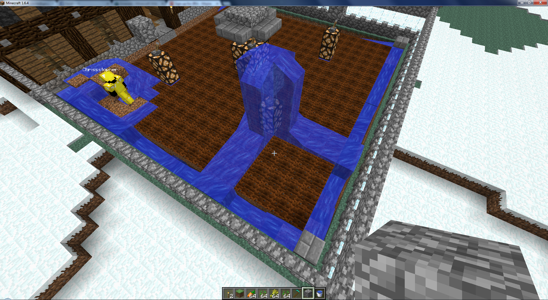 The water sometimes fails to flow in some directions, as shown in screenshot minecraft-waterflow2.png.