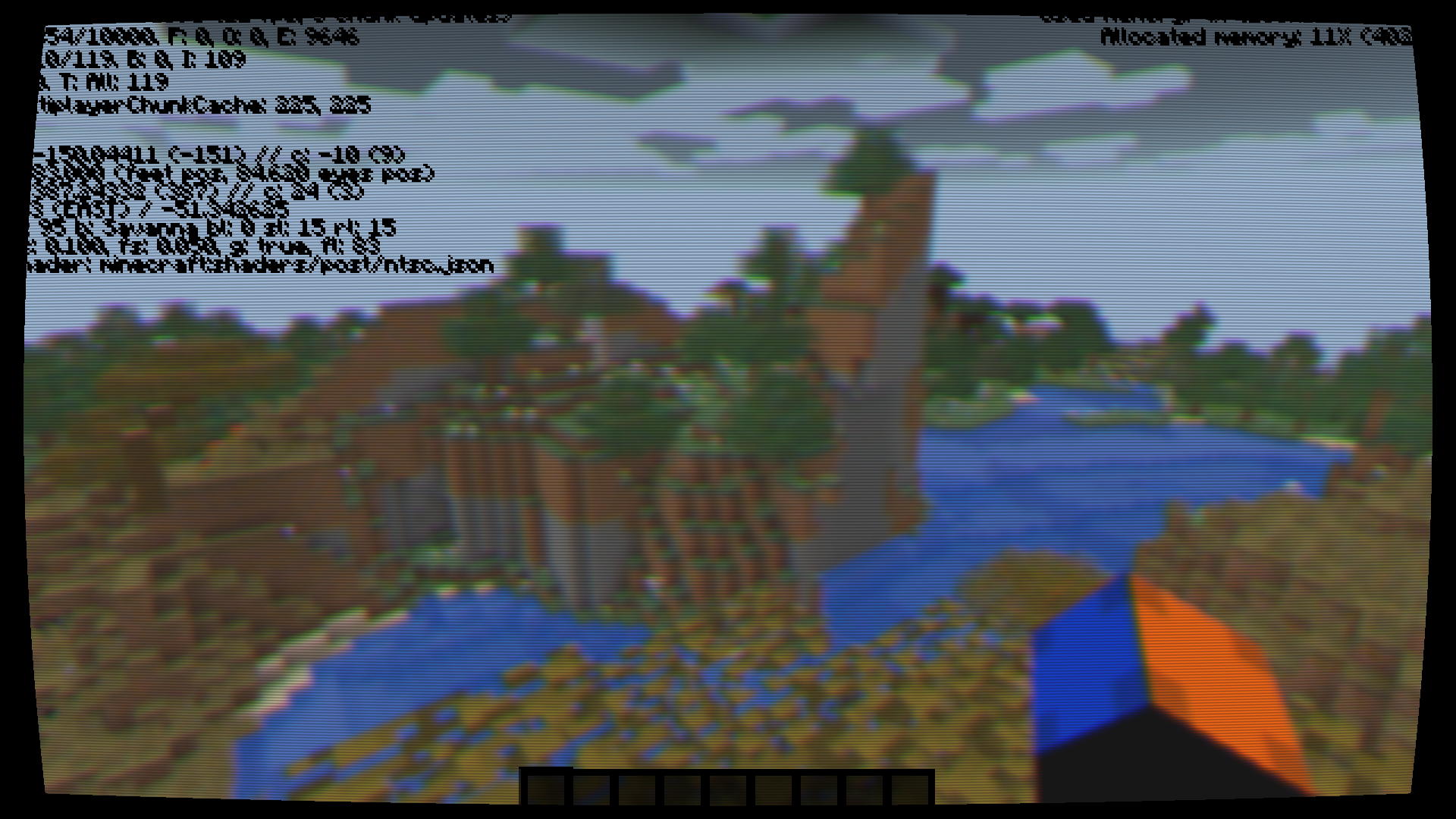Upon clicking the 'super secret settings' button, the screen will become entirely black (menus and all). If I continue clicking, the shaders continue to cycle, and a few of them cause this problem, while others do not.