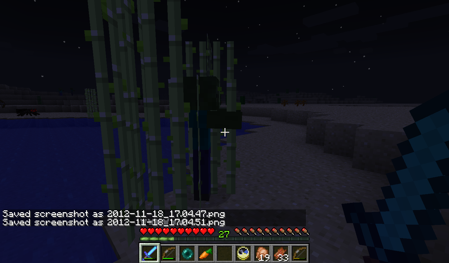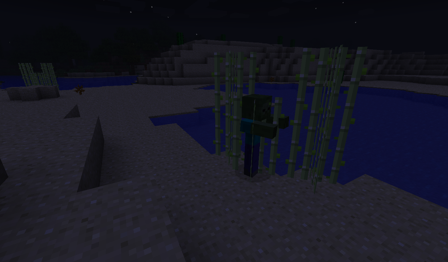 I saw a zombie, but he didn't came to attack me until I attacked it (removing the zombie from the sugarcane block).