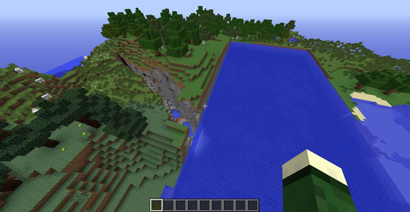 In the midst of generating world after world (to find a jungle) in creative; I happened to spawn in a few with these very odd square oceans as well as one with an odd elevated chunk. The first of which was rather large ocean or lake that was entirely square, ignoring elevation, it just plopped itself in the middle of a few biomes. I flew around a bit and the ocean continued its square nonsense. I attempted to replicate it with its seed "scumbag" (let's just say I was bored and wanted a jungle), however the odd ocean was gone and the world generation was fine. The second world was similar, only it had a smaller ocean. And the third appeared to have a single elevated chunk. (pictures below: the first two of "scumbag", the third of the second world, and the fourth picture of the funny chunk.)