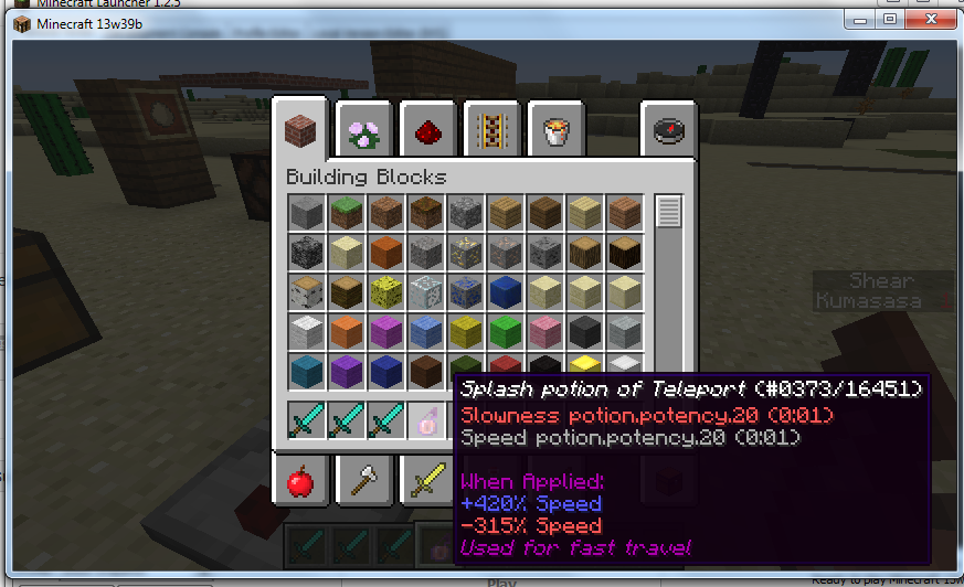 I've noticed this for a while and haven't found a post on it yet. If you have lvl 20 slowness and lvl 20 speed in the same potion, the "When applied" stats rapidly jump back and forth. Example code: