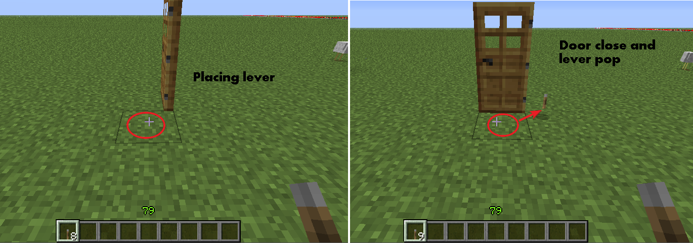 If you have an open door and you place a lever next to it, the door destroys itself. I've only proven it to work with a wooden door, and the lever being on the floor
