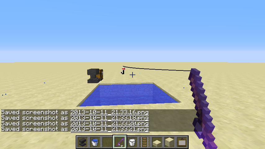 When fishing while testing the new enchantments I found that the hook sunk, and then started to float out of the water in mid-air. Also (This may be a separate bug, I'm unsure) splash particles appear about meter away from the water and/or fishing rod.