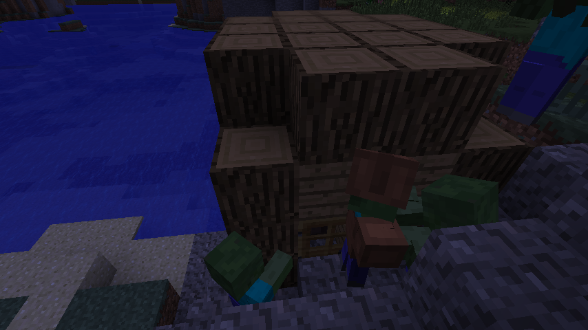 I was looking around seeing what was new in the new minecraft snapshot. I then found a village to the east of it was an abnormal structure. Whether it was normal or not I found it strange that suddenly a mound of dirt and stone spawned above ground. Soon I started spawning zombies. I then found that zombies could attack testificates/Villagers behind their own doors so they could attack even though there was a door between them. I also noticed that the house had gravel on all sides and it was a narrow passage and half the door was blocked by gravel. Hope I helped I like what you're doing jeb, can't wait for 1.7 where we won't have problems with mod IDs conflicting!