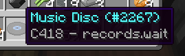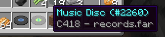 In the inventory screen music discs show "C418 - record.<name>".