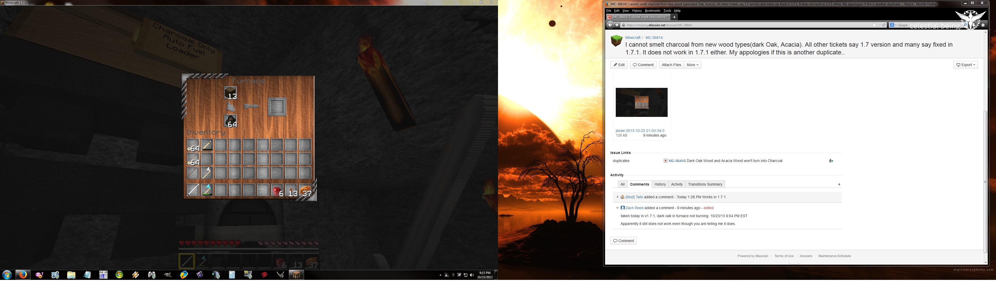 taken today in v1.7.1, dark oak in furnace not burning. 10/23/13 9:04 PM EST
