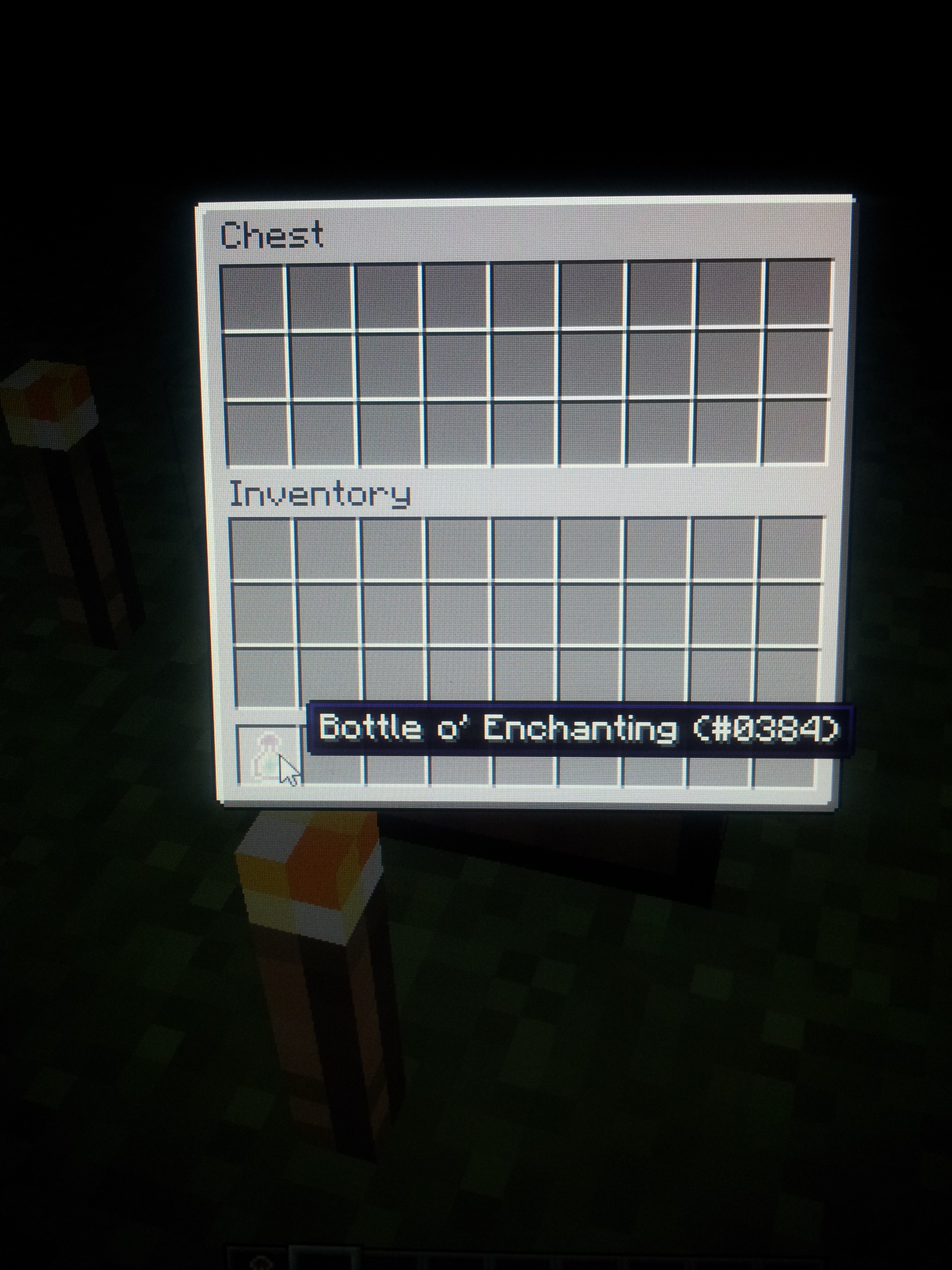Also, just by having the xp bottle in your inventory, all text becomes white, until you move your mouse over it.