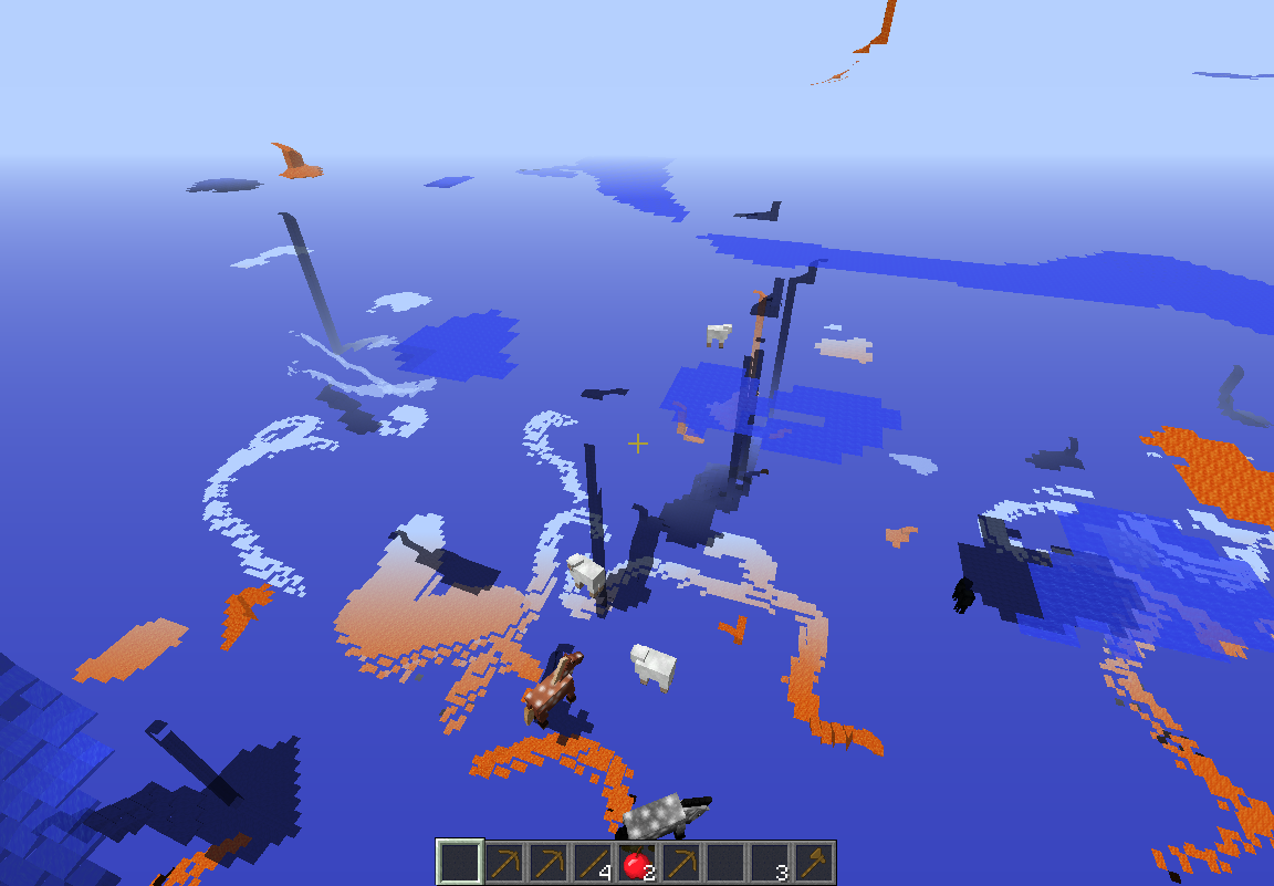 The world bugged out all but a few blocks turned invisible