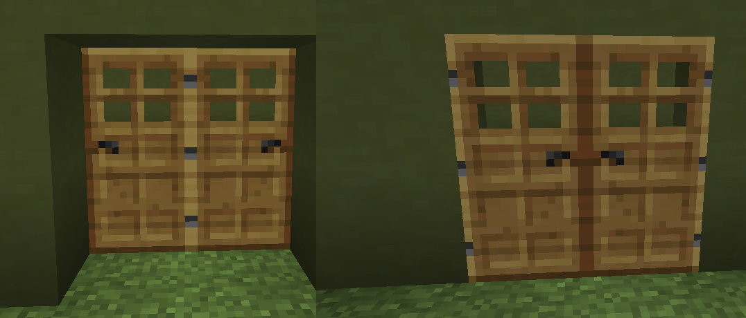 Survival and creative. You can see it best on the picture, on one side of the door (double doors) the textures are flipped horizontaly.