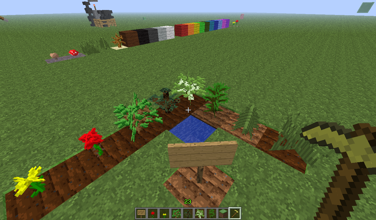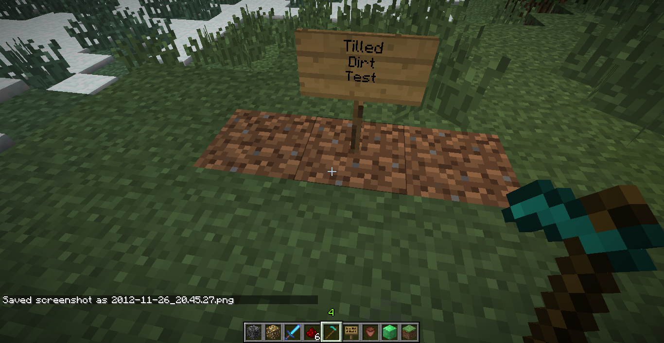 if you plant tall grass/saplings/flowers or place a sign on dirt and then till the dirt the plant/sign will stay ther on top of the farmland(tilled dirt).For some reason it only applies to a dirt block under it not a grass block under it.