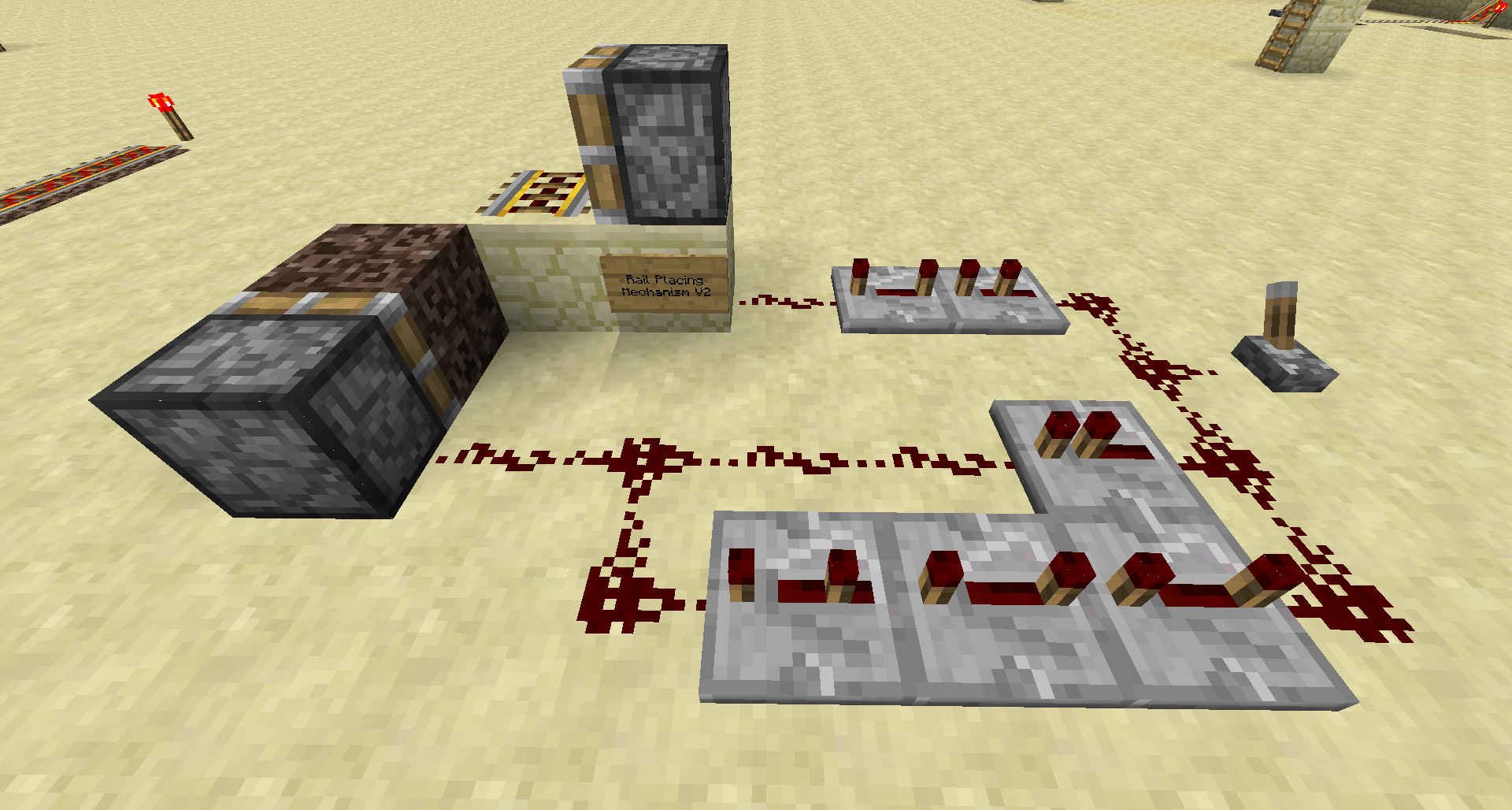I have a small mechanism to place rail on soulsand and then removes them both. I had one that had been created before 1.4 and it still works well even in 1.4.5.