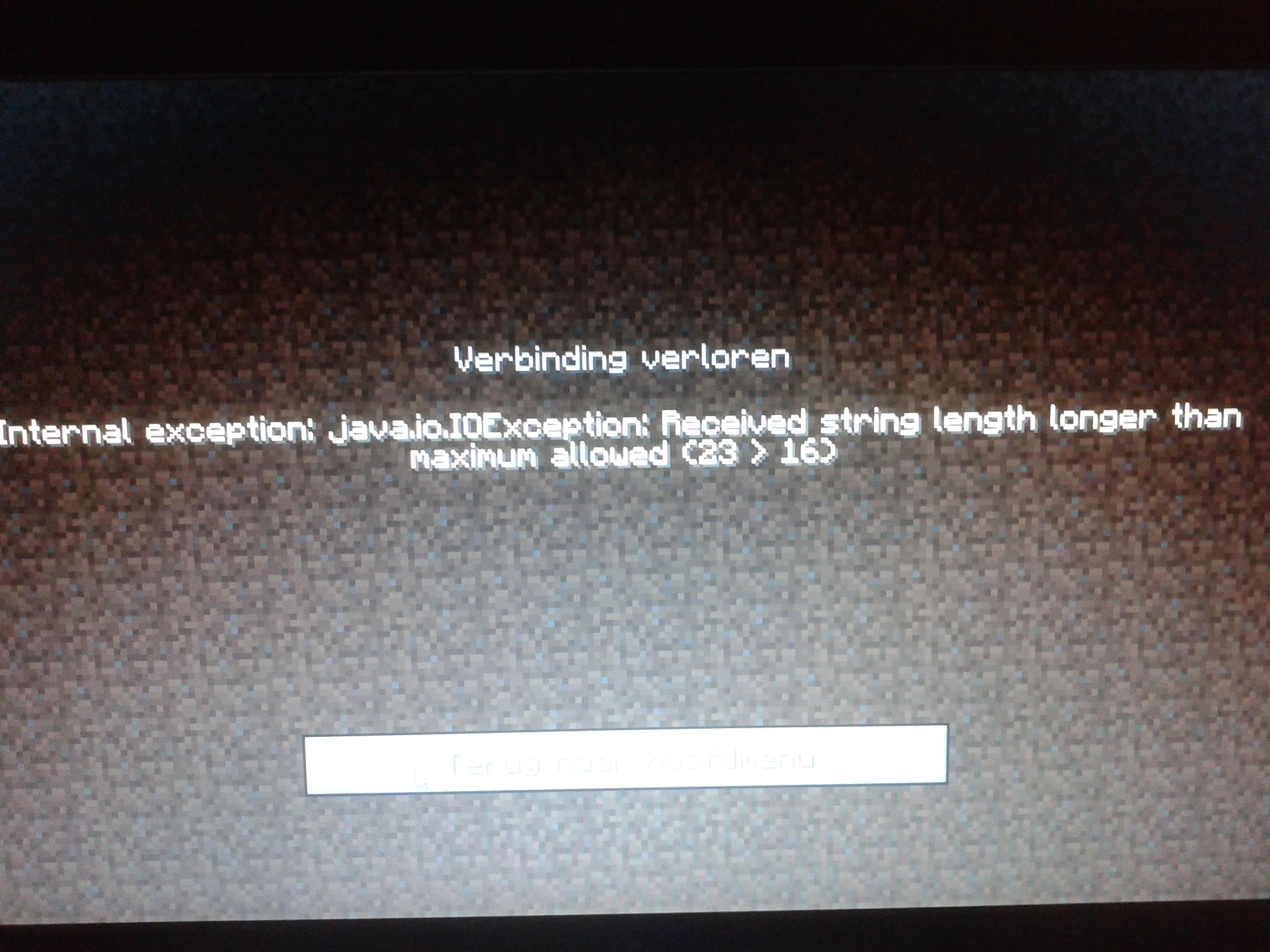 when I opened my world to lan and he tried to connect he received an error: Internal exception: java.io.IOXxception:Received string length longer than maximum allowed (23 >16). on my world I got the message: .... joined the game and at the same moment I got the message ..... left the game. when I tried to join his lan world I just got the end of stream error the moment I pressed connect to server. we tried it the other way around and we got 1 time-out and one instant end of stream.