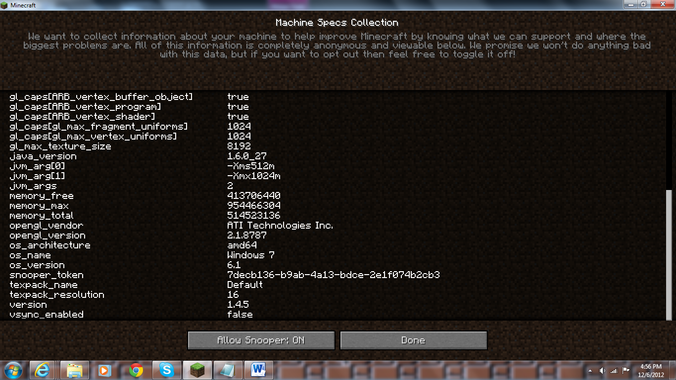 The official Java site says that I'm using Java 7 Version 9 while the snooper says that I'm using 1.6.0_27