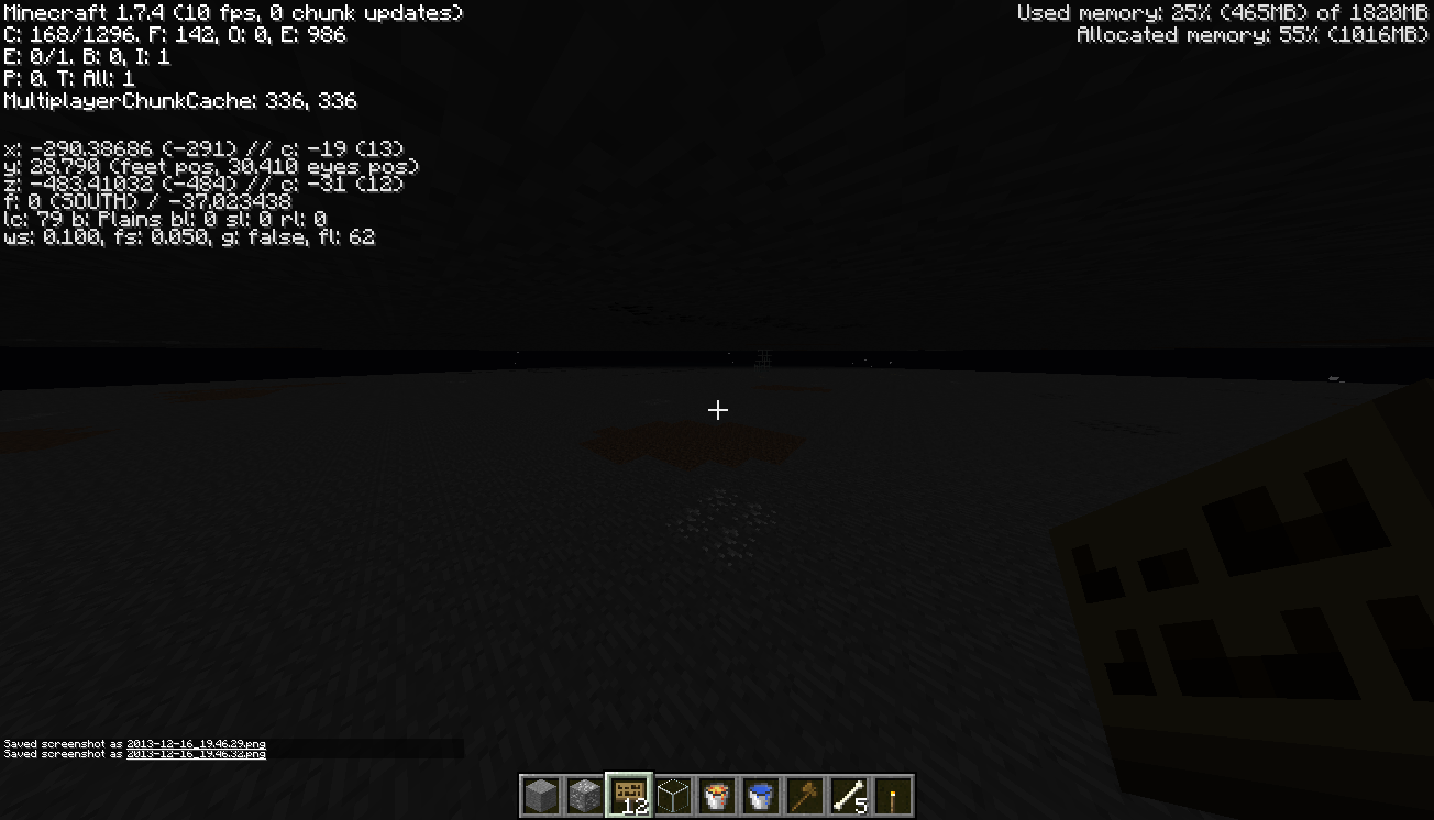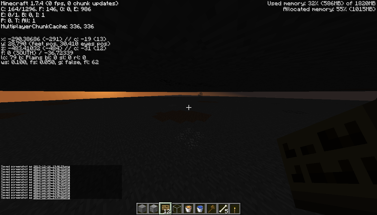 Pictures(I'll upload five or six to this issue): http://redsandbox.no-ip.org/Files/Minecraft/Glitches/Pics/