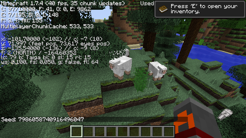 Now here is the problem with this seed. The animals is not spawning in this area. None, notta, zilch. I do not know if the other biomes is effected but from what I can tell. Very little hostile mobs is also spawning in the game. I am getting some but not much however, NO animals is spawning for food.