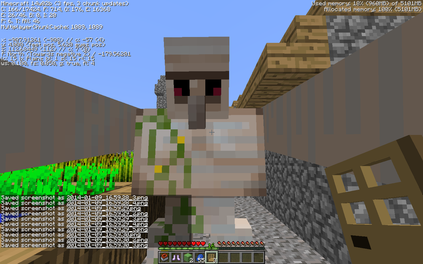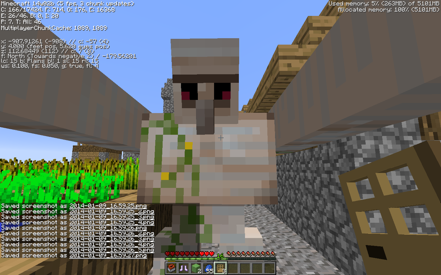 I went into a creative superflat world. I found a village with an Iron Golem. At night I hit a villager and an Iron Golem started to follow me around.