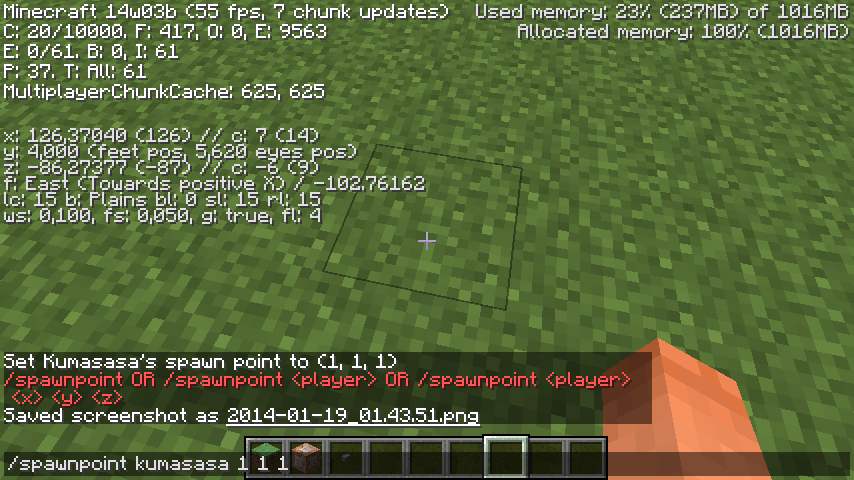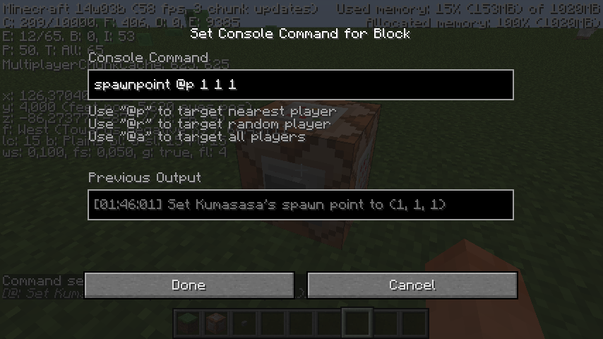 When /spawnpoint [username] x y z , the output comes out as