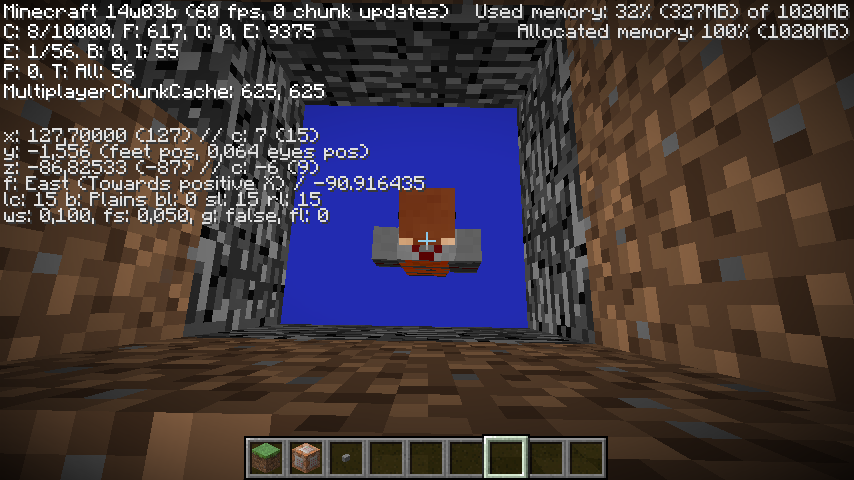 When entering the void in third person mode (F5) player skin disappears, it doesn't happen in 1.7.4.
