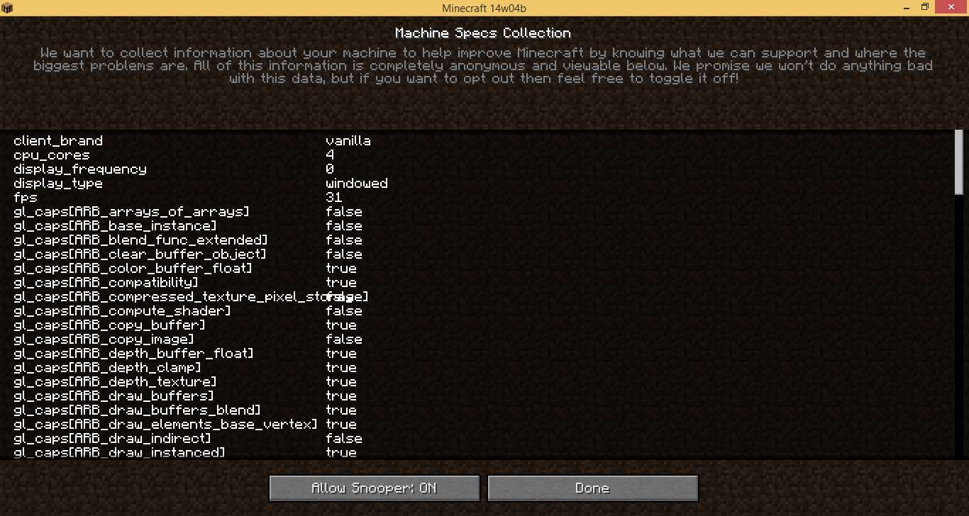 Scroll down until you see the line gl_caps[ARB_compressed_texture_pixel_storage] and you will see that it overlaps the false or true line.